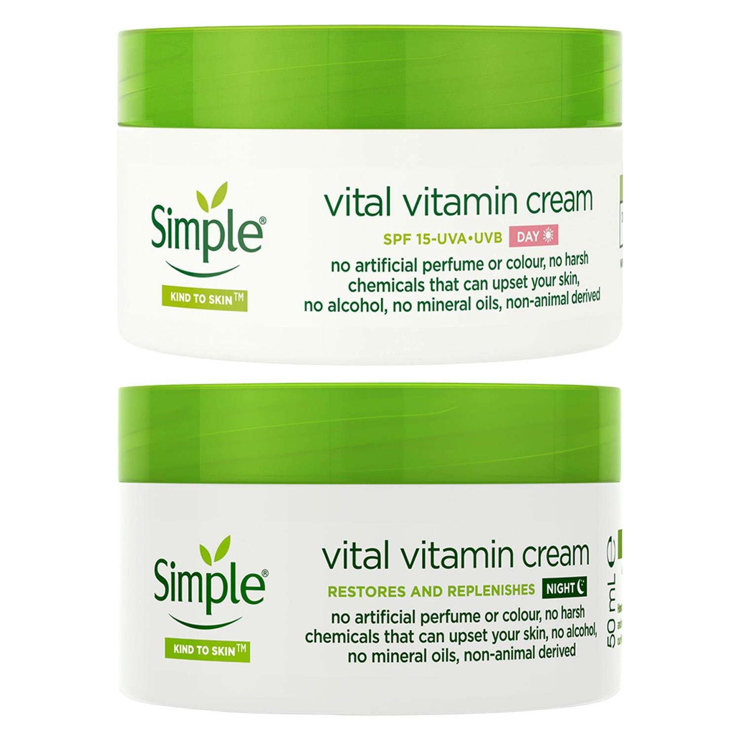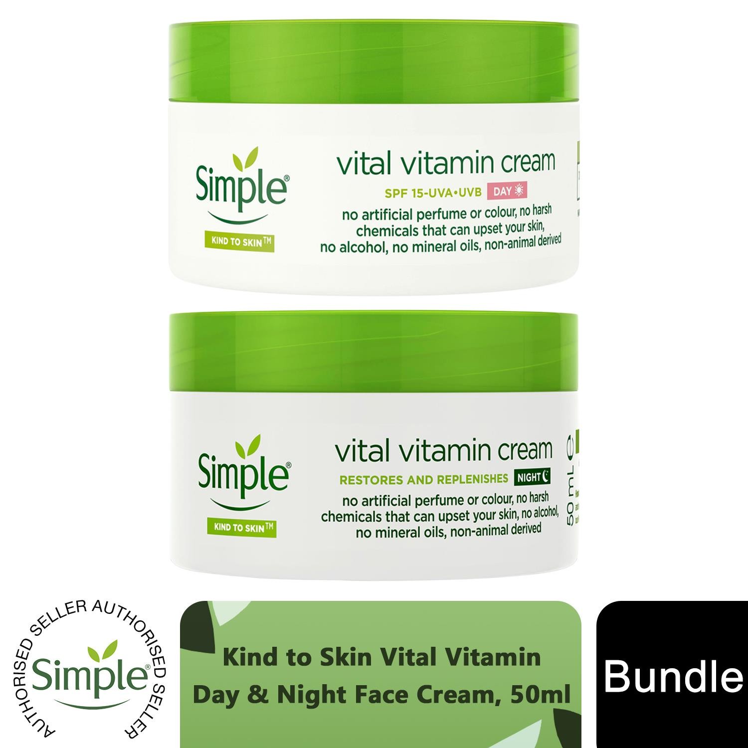 Simple Kind to Skin Face Cream Bundle - Day SPF15 or Night Cream, Hydrating,50ml
