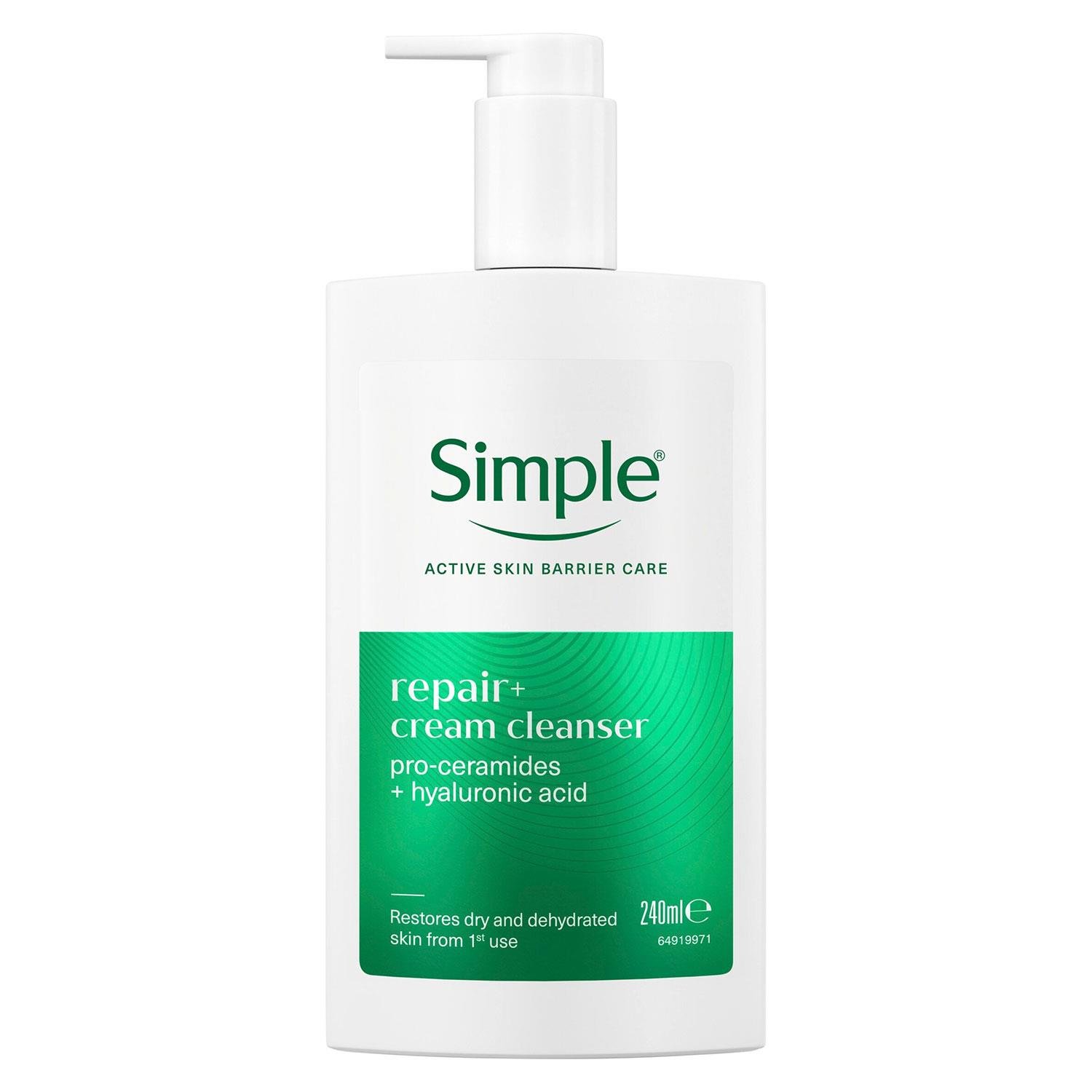 Simple Repair+ Cream Cleanser Soothing Hydrating Gentle Face Wash 240ml, 3 pack