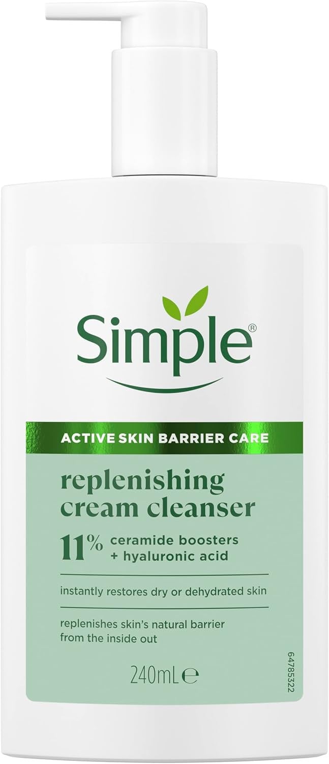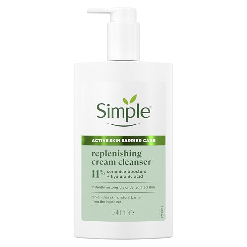 Simple Replenishing Cream Cleanser – Gentle Face Wash with Pro-Ceramides & Hyaluronic Acid – Restores Dry, Dehydrated Skin & Strengthens Skin Barrier – 240ml