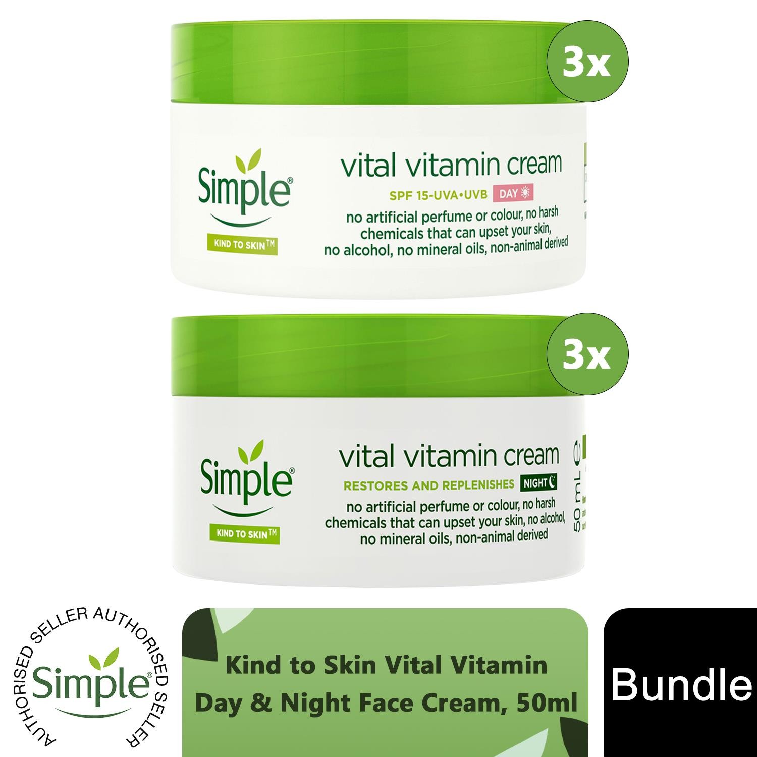 Simple Kind to Skin Face Cream Bundle - Day SPF15 & Night Cream 50ml, 3Pack Each