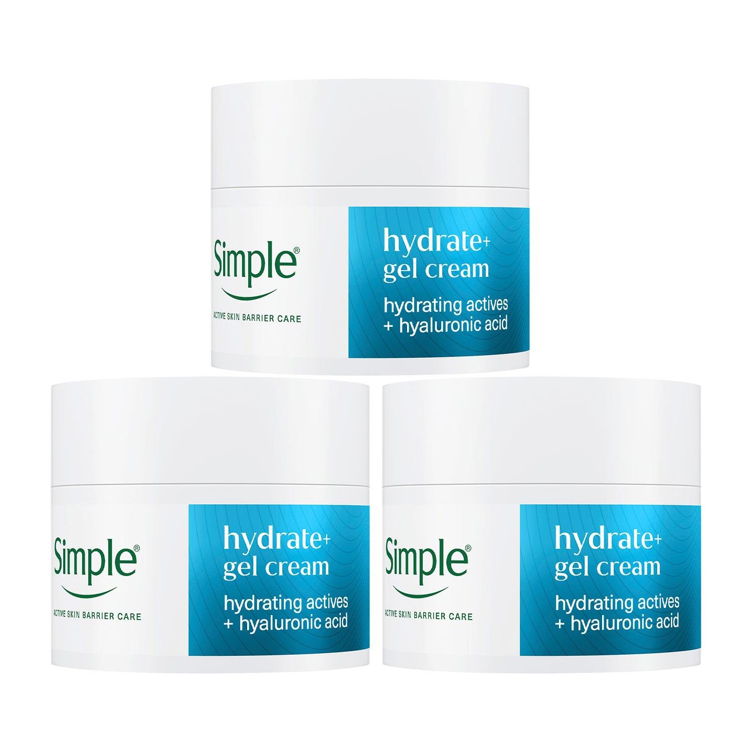 Simple Hydrate+ Gel Cream Refreshing Daily Face Moisturiser 50ml, 3 Pack