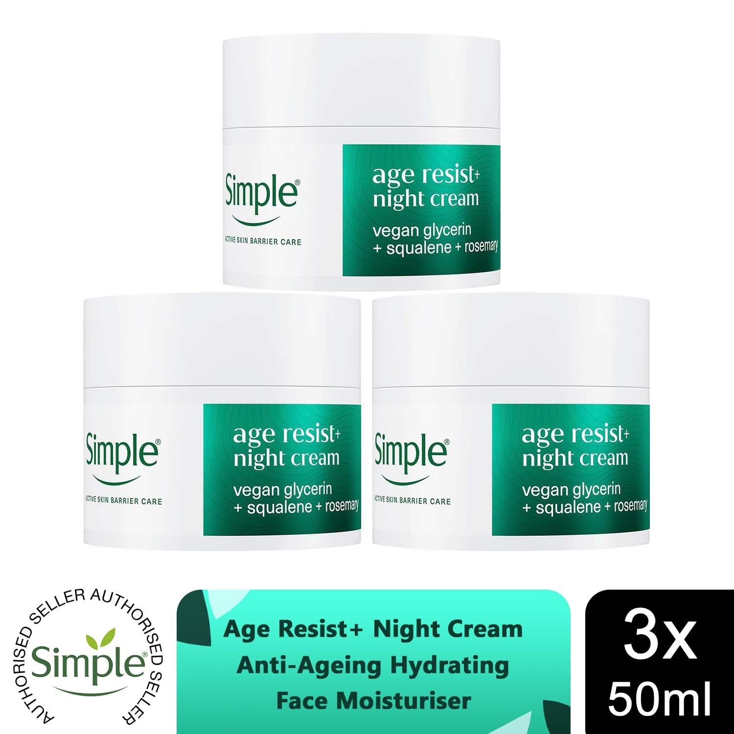 Simple Age Resist+ Night Cream Anti-Ageing Hydrating Face Moisturiser 50ml, 3Pk