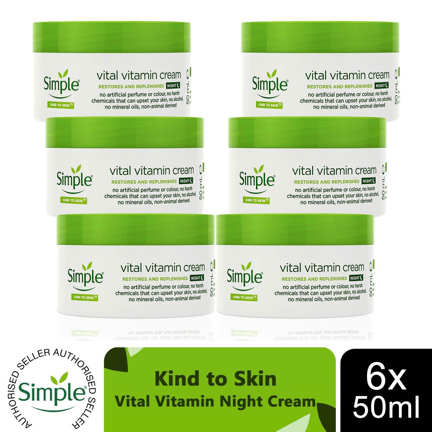 6 x Simple Kind to Skin Vital Vitamin Daily Face Cream SPF15 50ml Moisturiser
