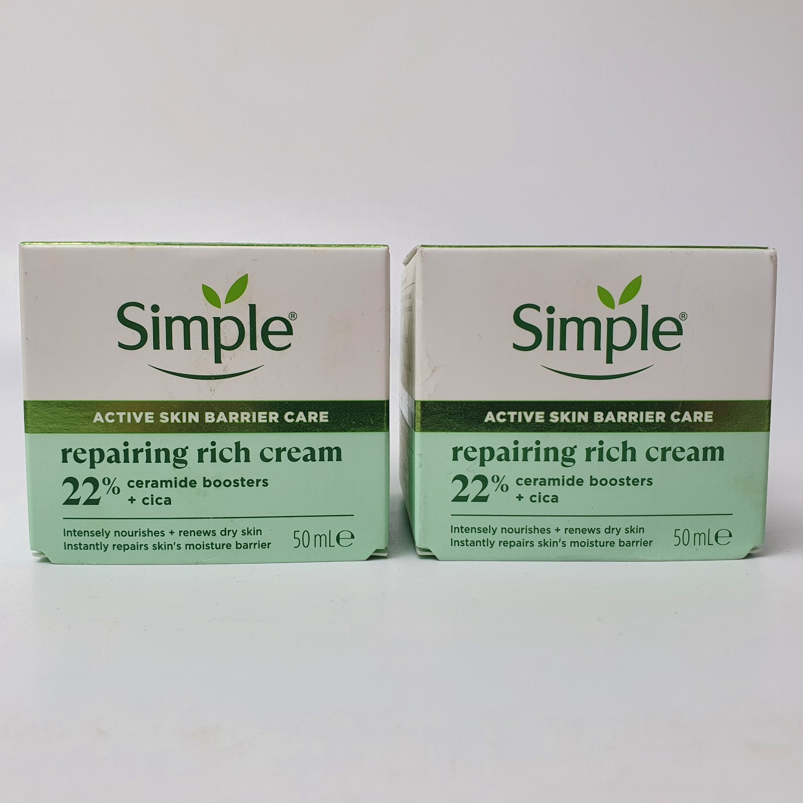 2x Simple Repairing Rich Face Cream 50ml 22% Ceramide Cica & Provitamin B5 Vegan