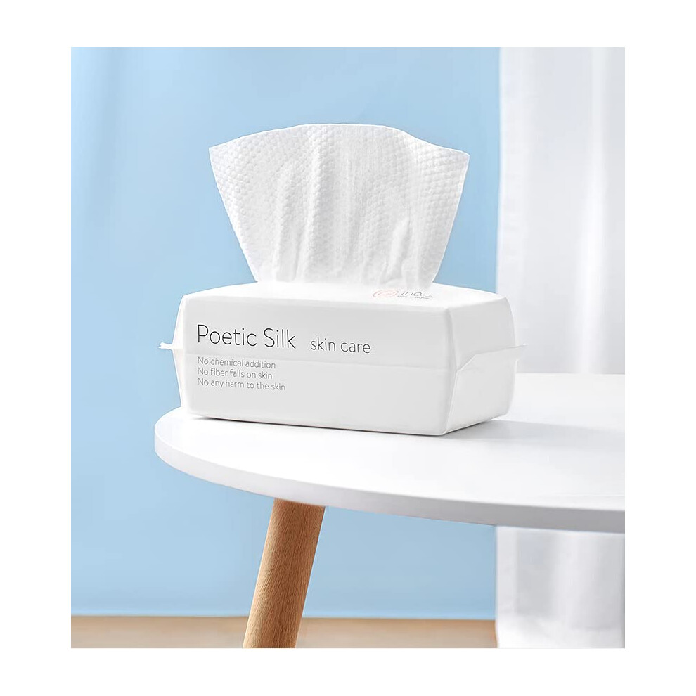 Disposable Face Towel, 100 Count Biodegradable Cotton Facial Dry Wipes, Simple F