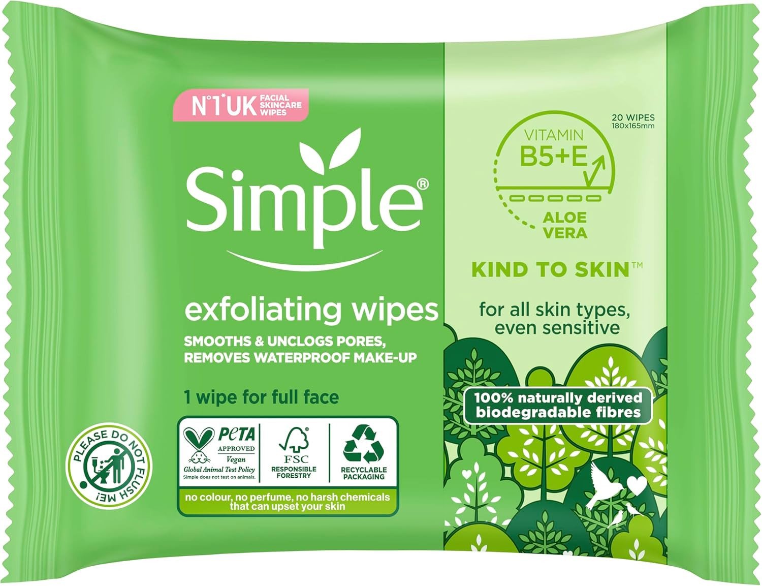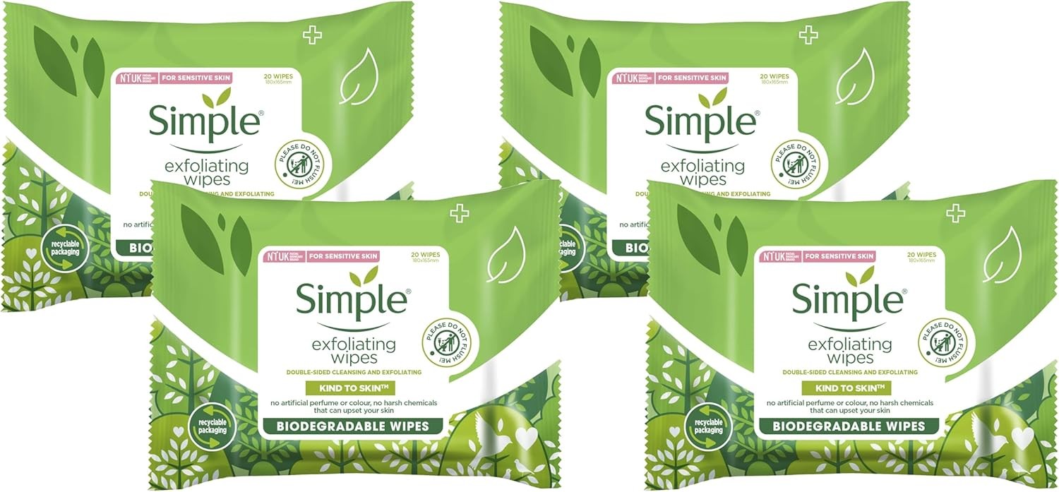 Simple biodegradable Exfoliating Face Wipes cleansing wipes to smooth skin UK