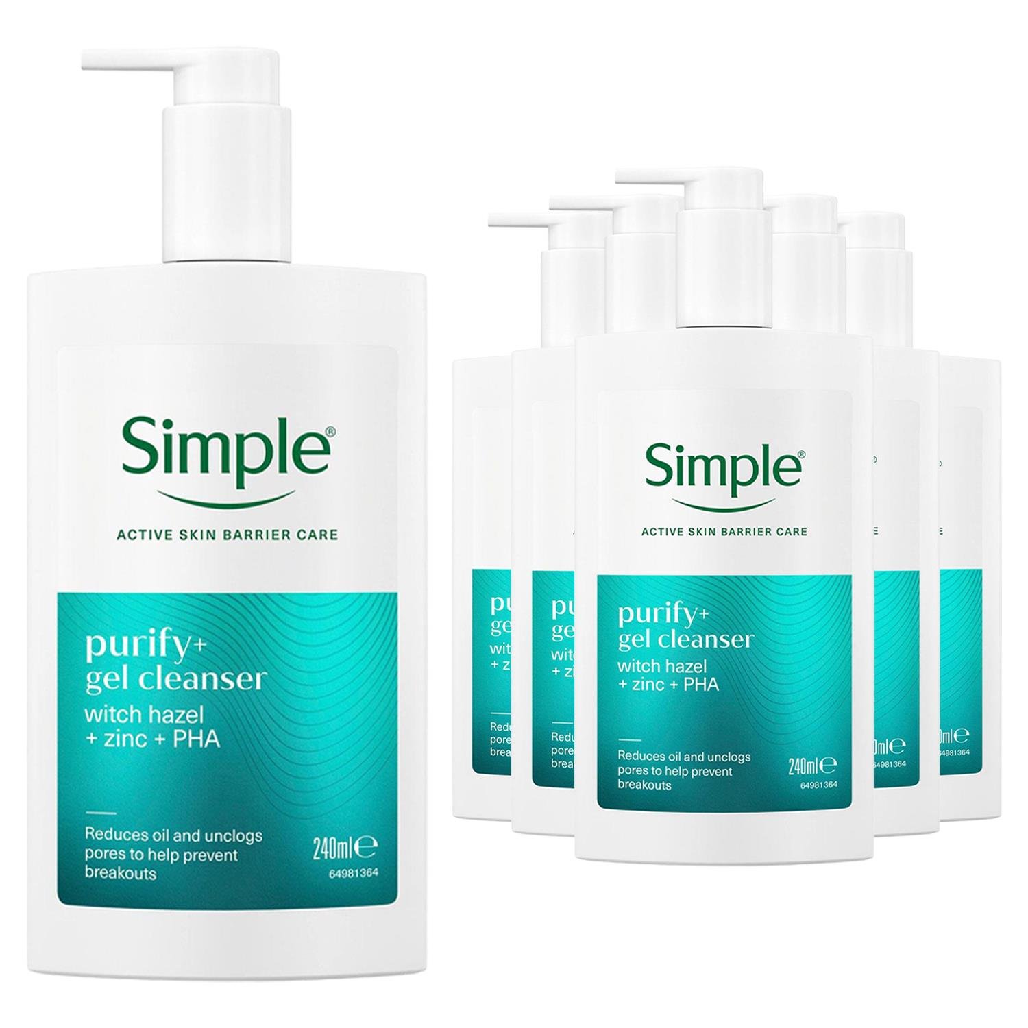 Simple Purify+ Gel Facial Cleanser Hydrating Skin Care Face Wash 240ml, 6 Pack - One Size