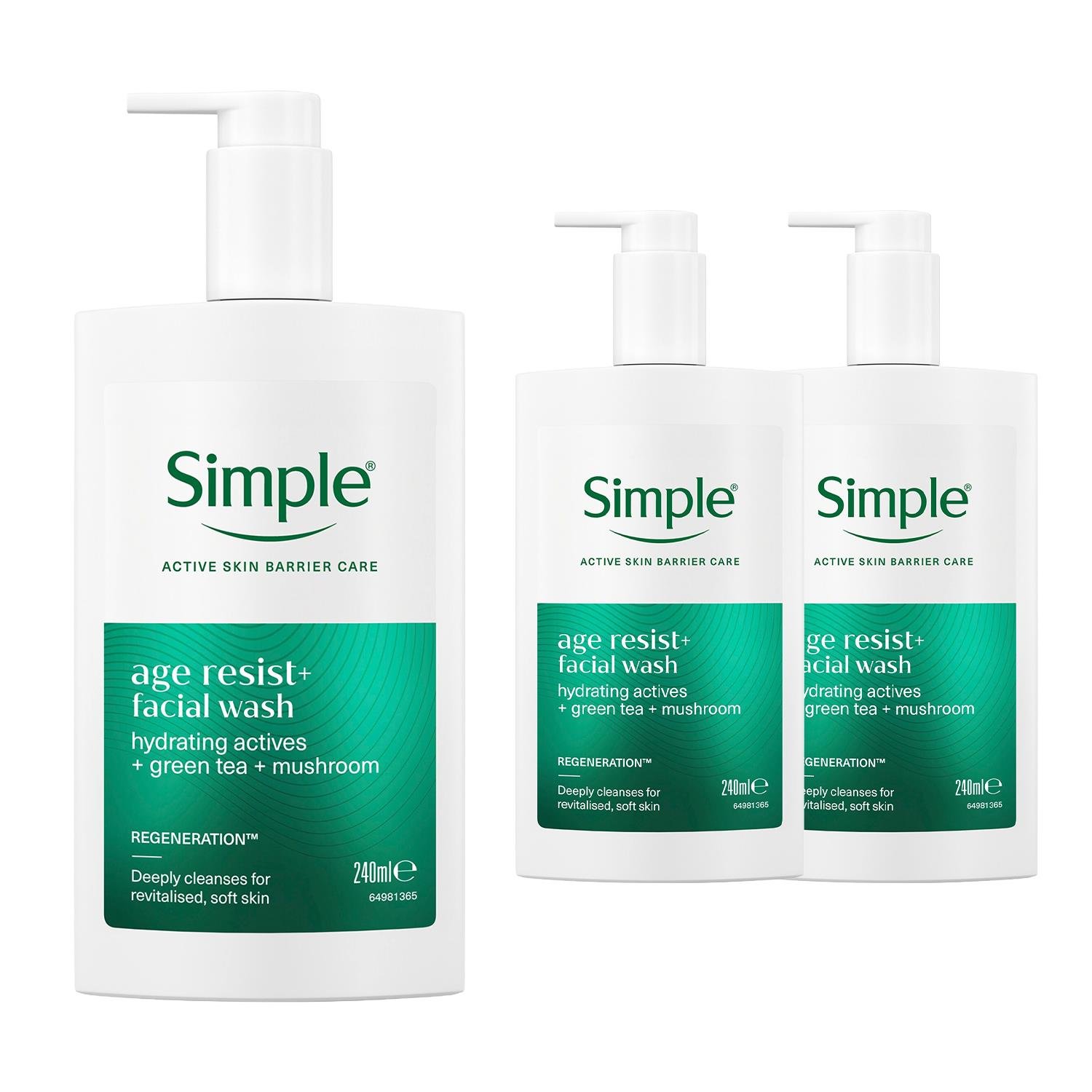 Simple Age Resist+ Facial Wash Anti-Ageing Hydrating Cleanser 240ml, 3 Pack - Green - One Size