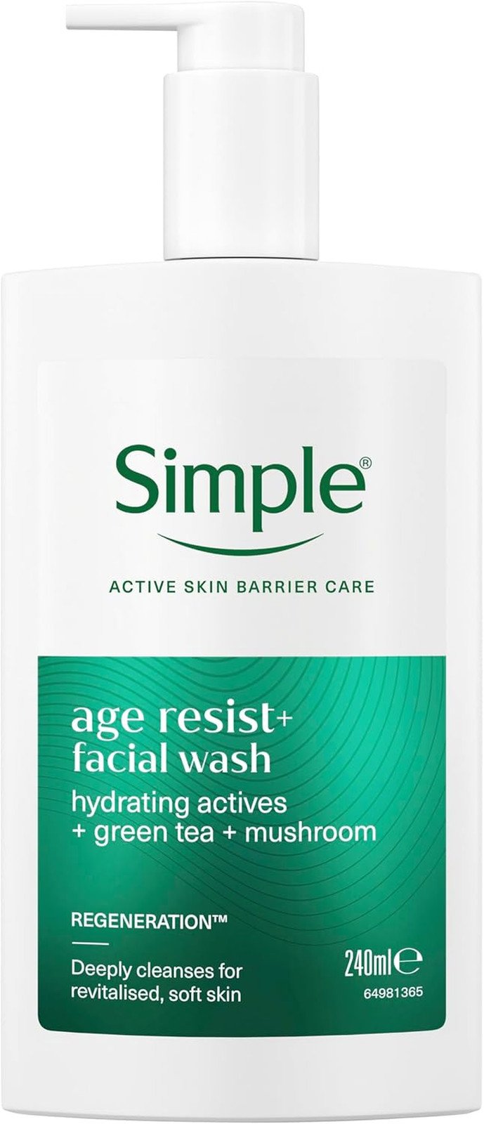 Simple Regeneration Age Resisting Facial Wash with green tea and prebiotic cleanser for revived and revitalised skin 150 ml