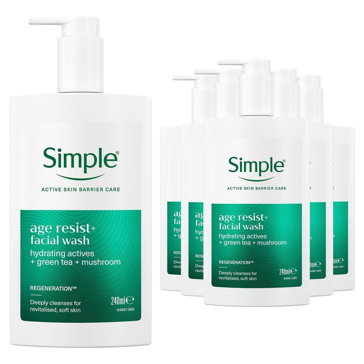 Simple Age Resist+ Facial Wash Anti-Ageing Hydrating Cleanser 240ml, 6 Pack - Green - One Size