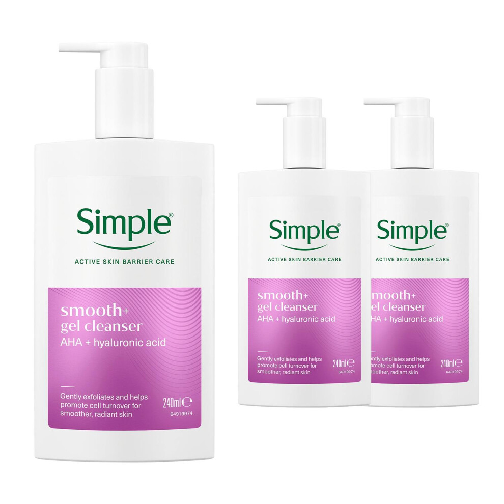 Simple Smooth+ Gel Facial Cleanser Softening Face Wash 240ml, 3 Pack