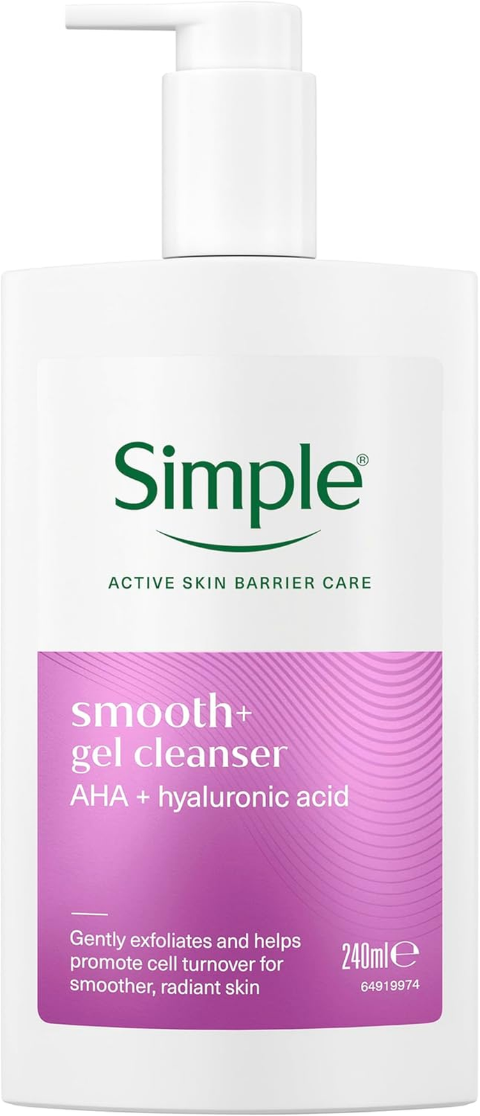 Simple Smooth+ Gel Facial Cleanser AHA + hyaluronic 240 ml (Pack of 1), Pink