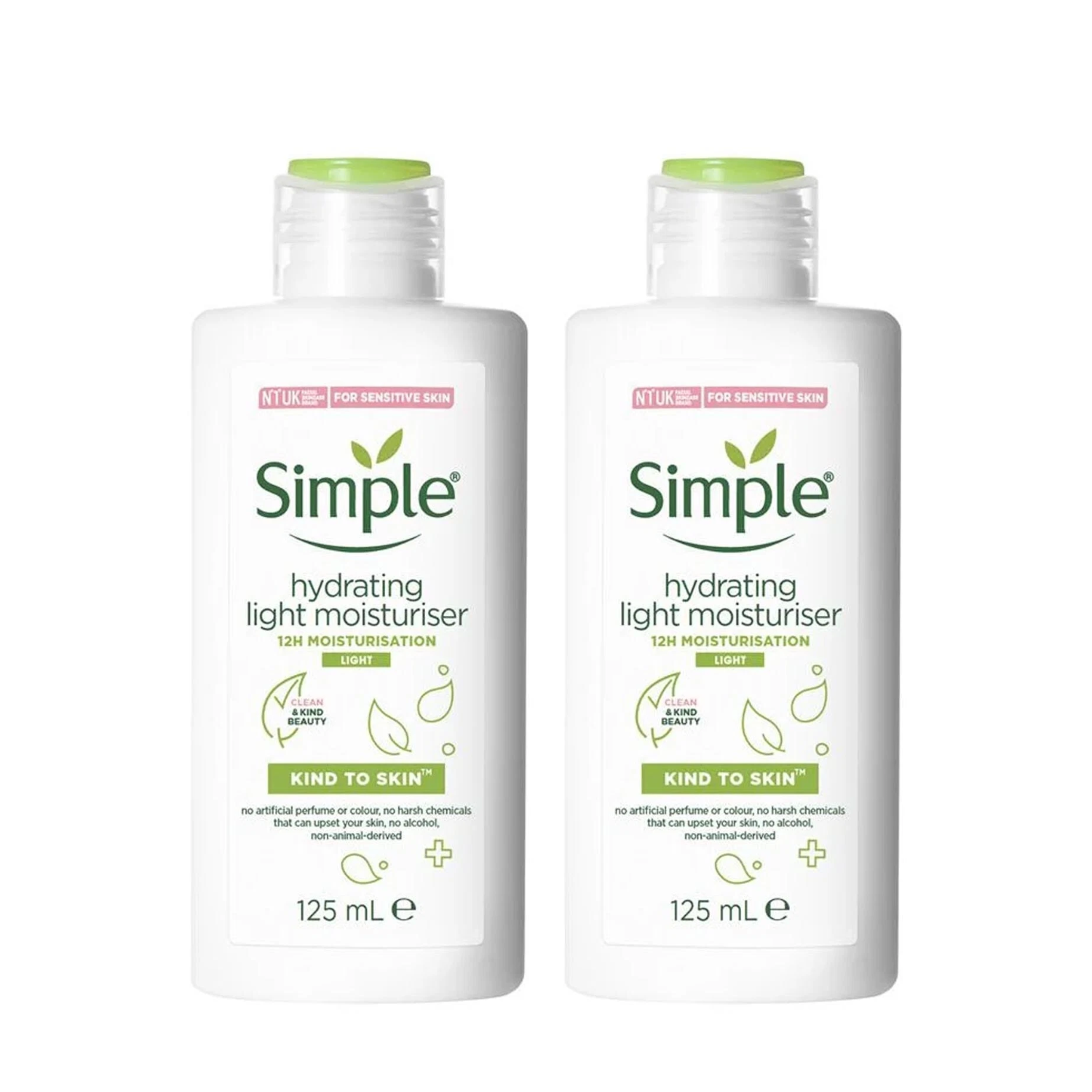 Simple Hydrating Light Moisturiser Kind to Skin, fast absorbing 2 x 125 ml