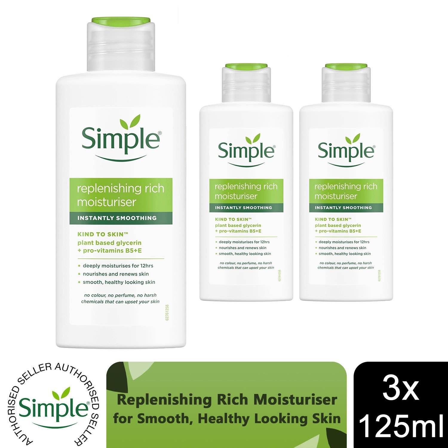 Simple (3x Rich Moisturiser, 125ml) 3x 125ml Kind to Skin 12H Hydrating Light Moisturiser for Sensitive