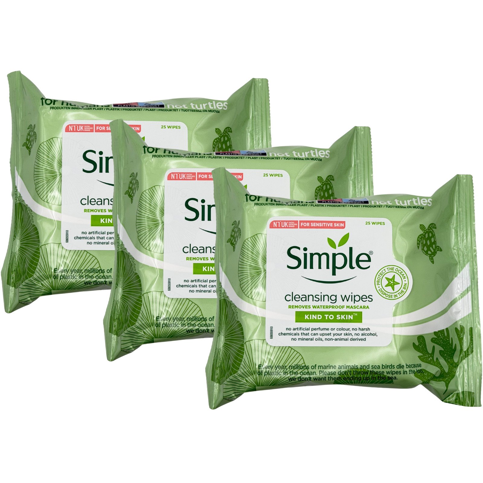 Simple Kind to Skin Cleansing Wipes for Sensitive Skin 25 Wipes - 3 Pack