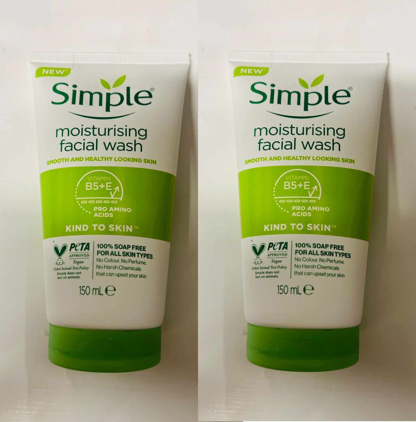 Simple Kind to Skin Moisturising Facial Wash 100% Soap Free Foam 150ml Pack of 2