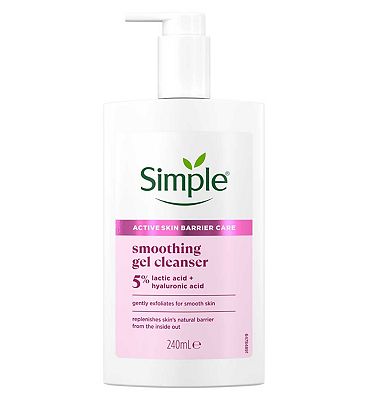 Simple Smooth+ Gel Facial Cleanser AHA + hyaluronic acid gently exfoliates and helps promote cell turnover for smoother, radiant skin 240 ml