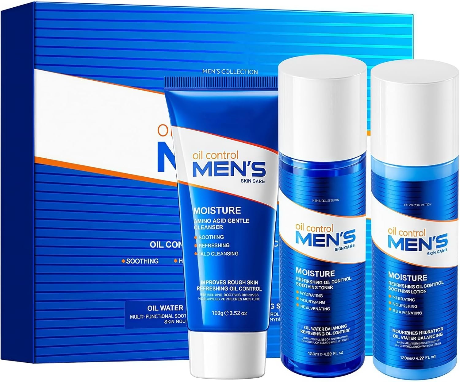 3PCS Mens Skincare Set - Includes Cleanser-Toner-Lotion, Simple Skin Care Gift S