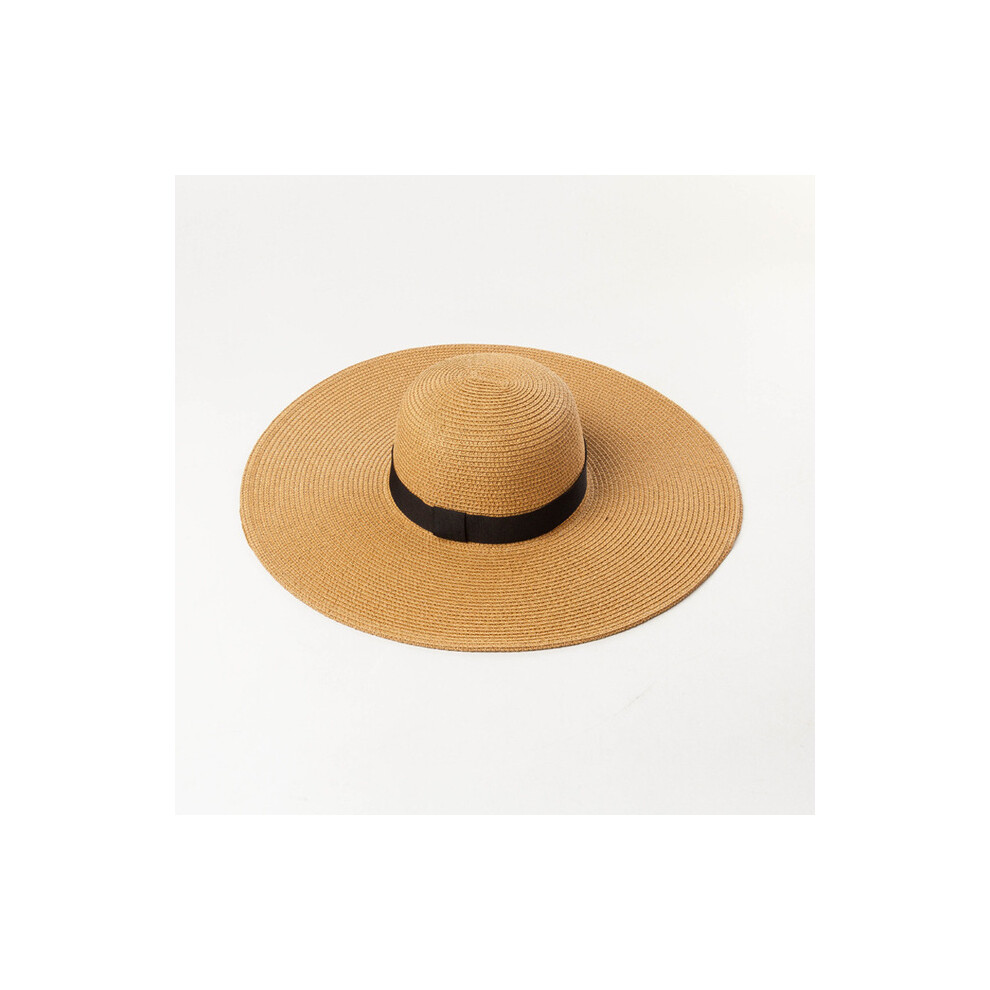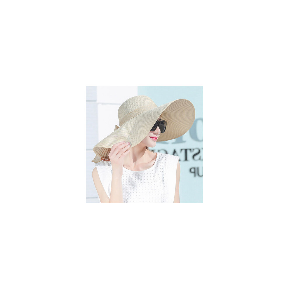 (Beige, 55-58cm) simple summer straw hat women big wide brim beach hat sun hat foldable sun block UV protection panama hat bone chapeu feminino