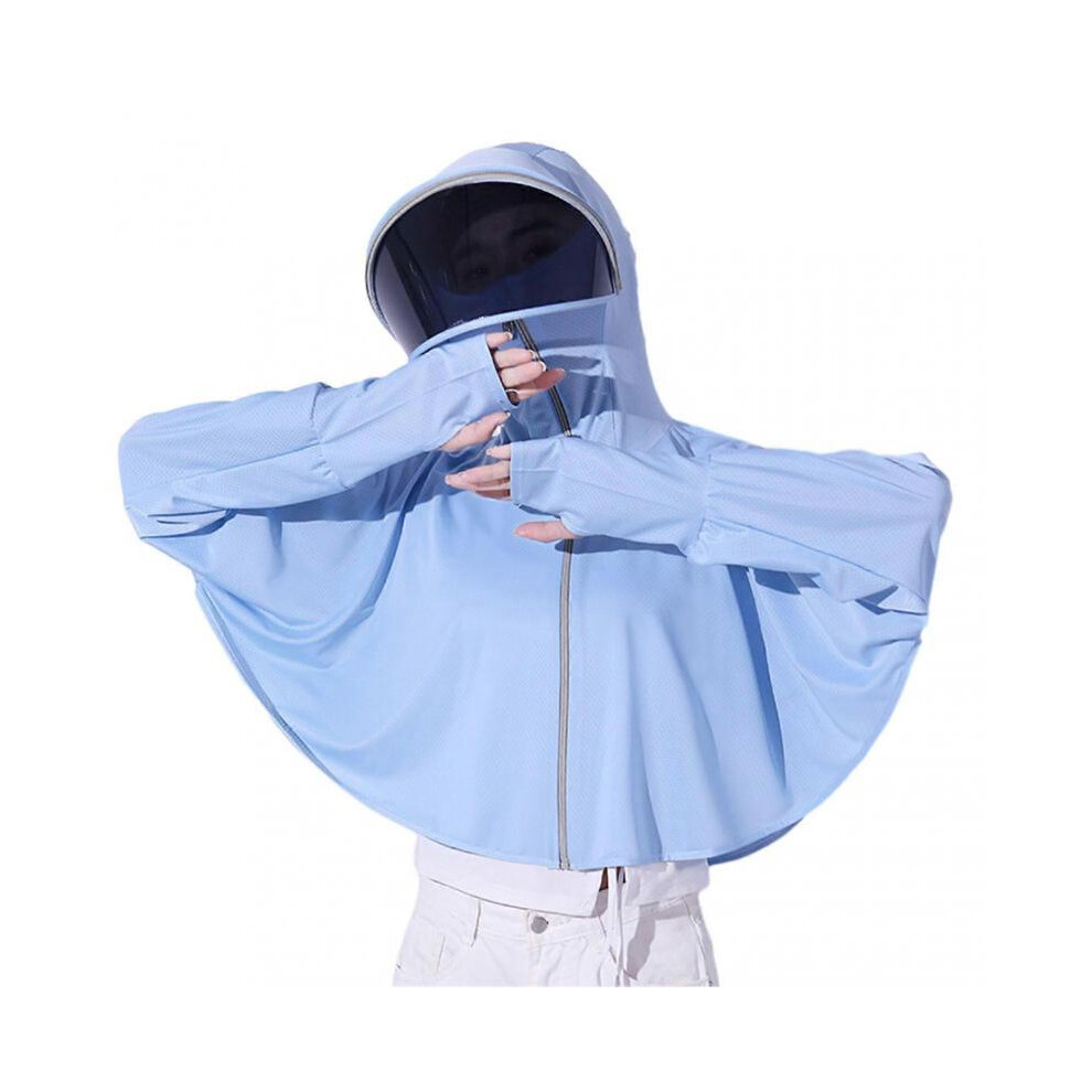 (One Size, Blue) Simple Sun Protection Coat with Detachable Lens Sweat-Absorbent Long Sleeve Jackets for Hiking Vacation