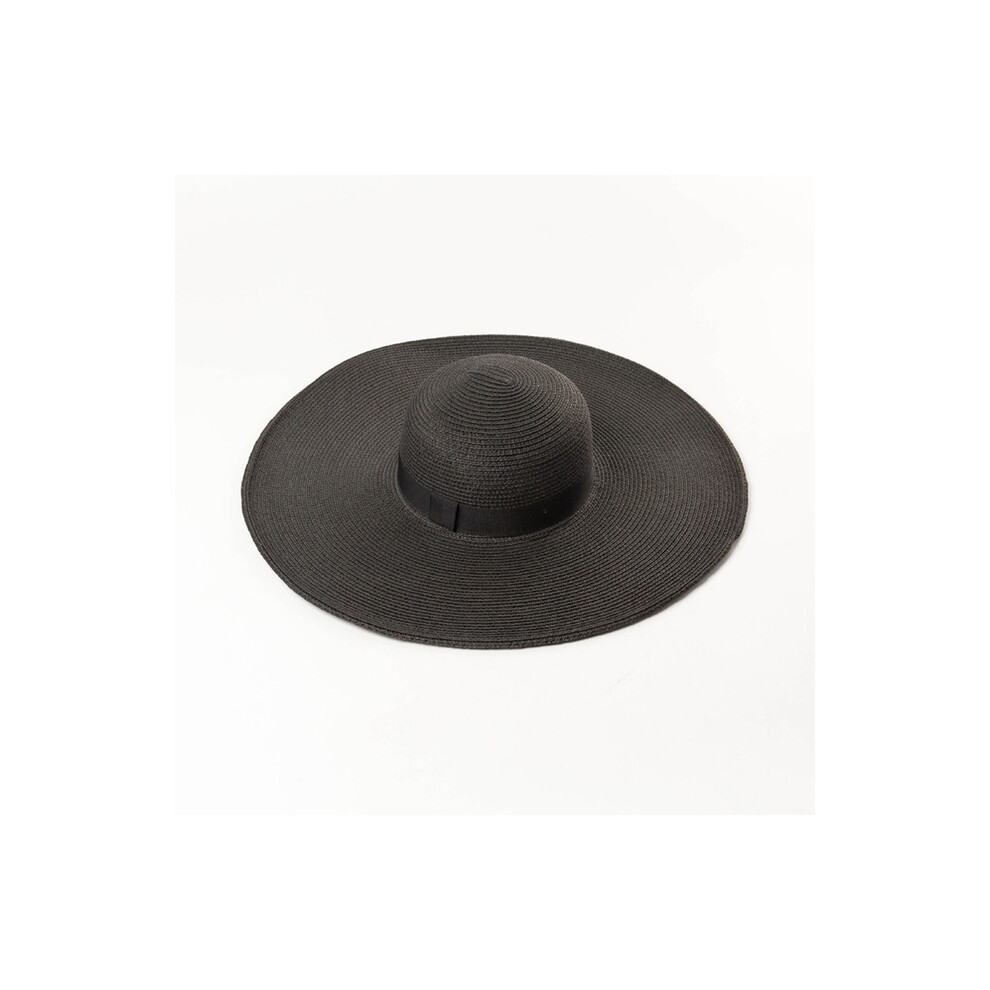 (Ribbon black, Brim 11cm) Summer Simple Floppy Sun Hat Women Wide Brim Beach Hat Girls Seaside Travel Foldable Straw Hat Sunscreen UV Protection Lady