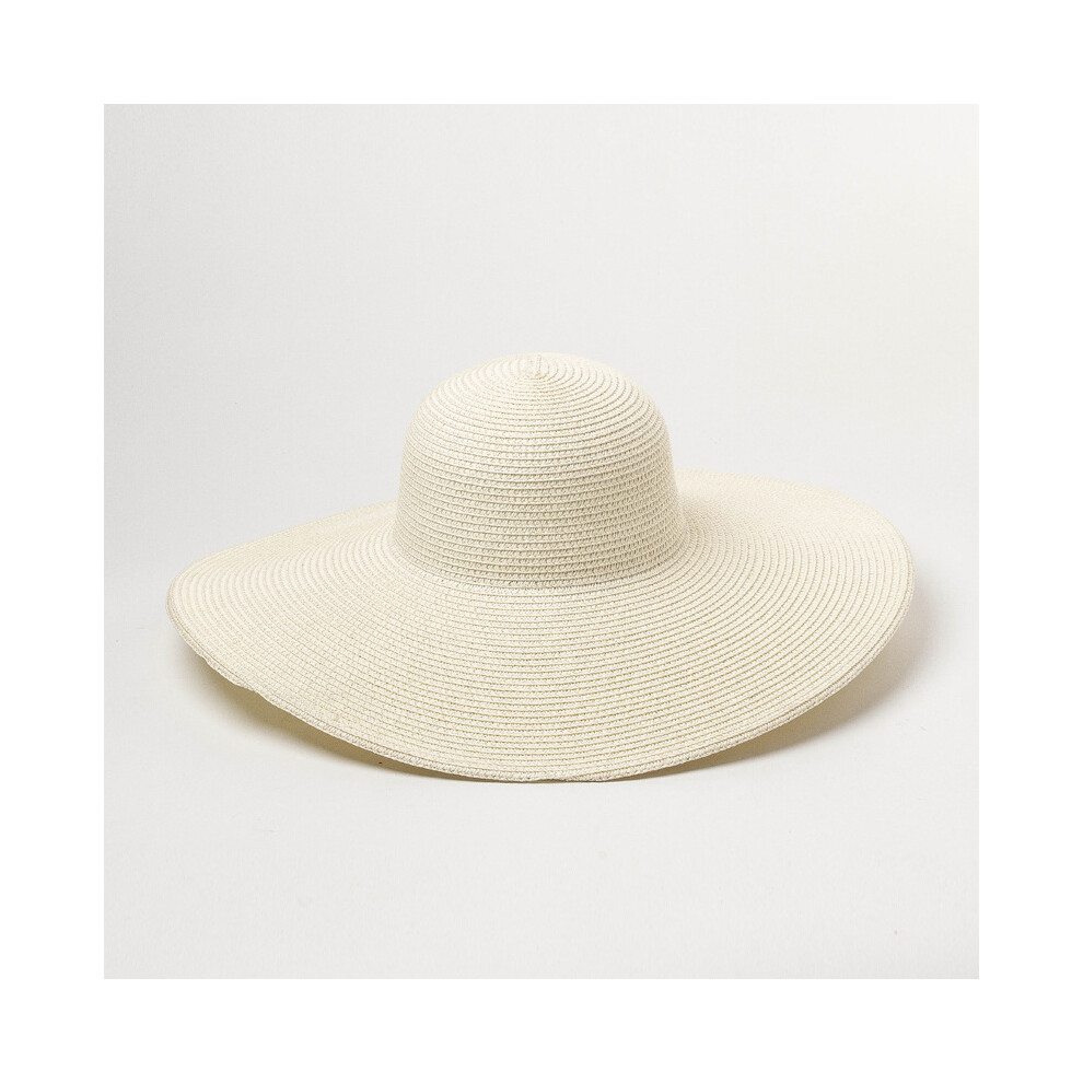 (milk white, Brim 14cm) Summer Simple Floppy Sun Hat Women Wide Brim Beach Hat Girls Seaside Travel Foldable Straw Hat Sunscreen UV Protection Lady Ca