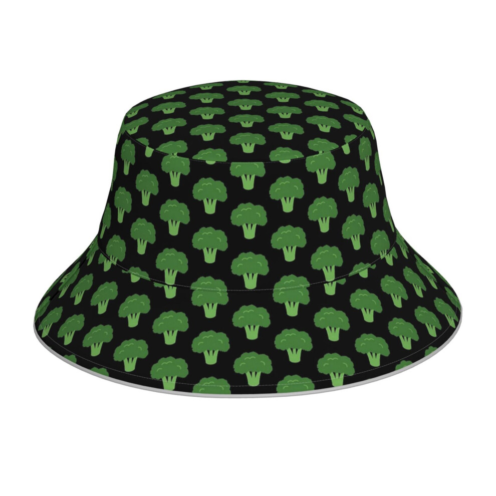 (Broccoli Brocoli Vegetable Repeat Pattern Simple Food Illustration_4248) Bucket Hat Reversible Reflective for Men Women - UV50+ Sun Protection Double