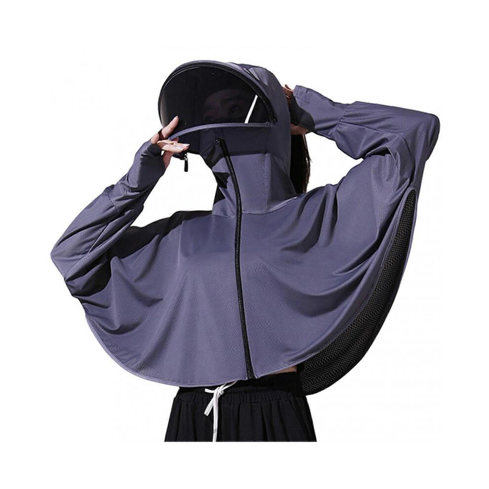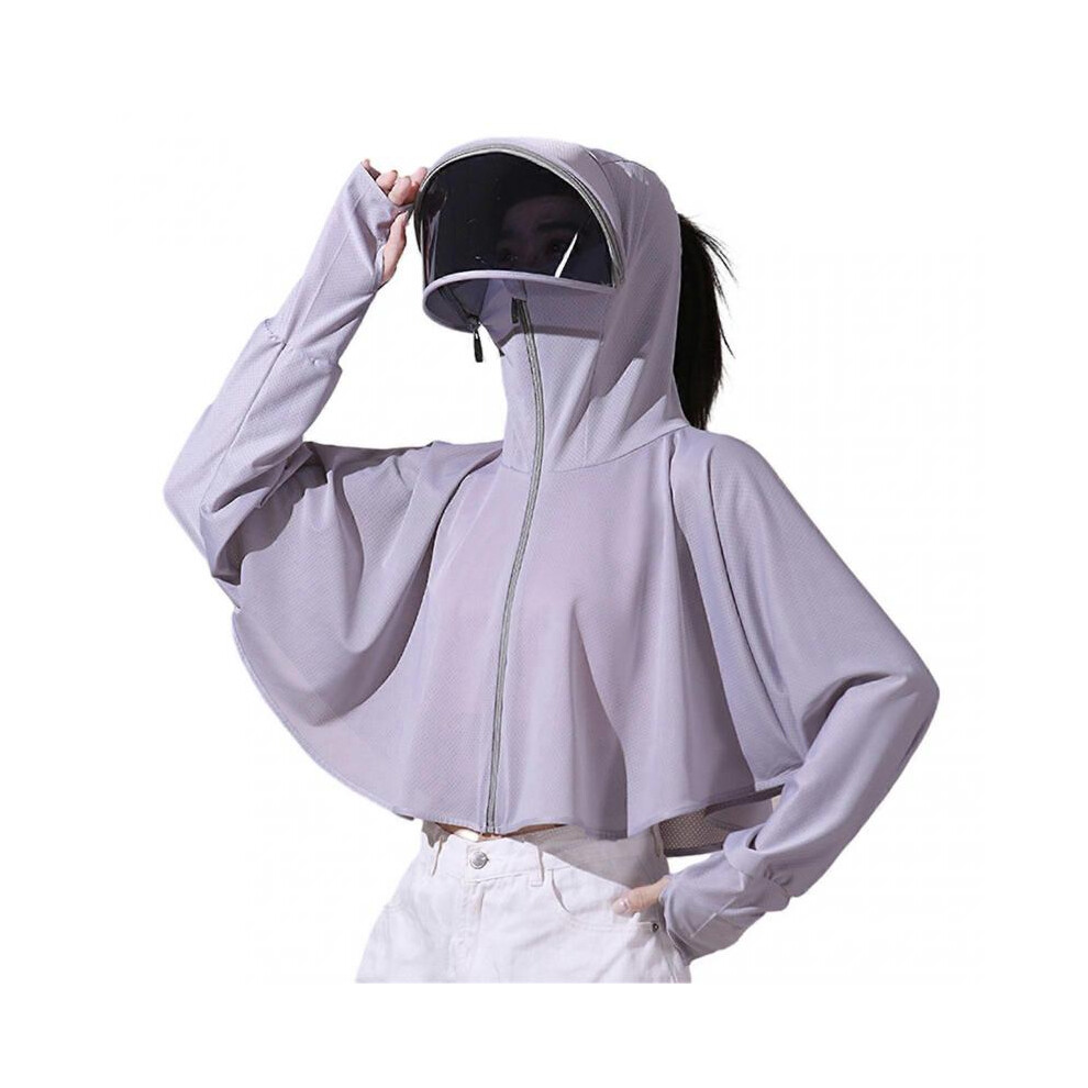(One Size, Grey) Simple Sun Protection Coat with Detachable Lens Sweat-Absorbent Long Sleeve Jackets for Hiking Vacation