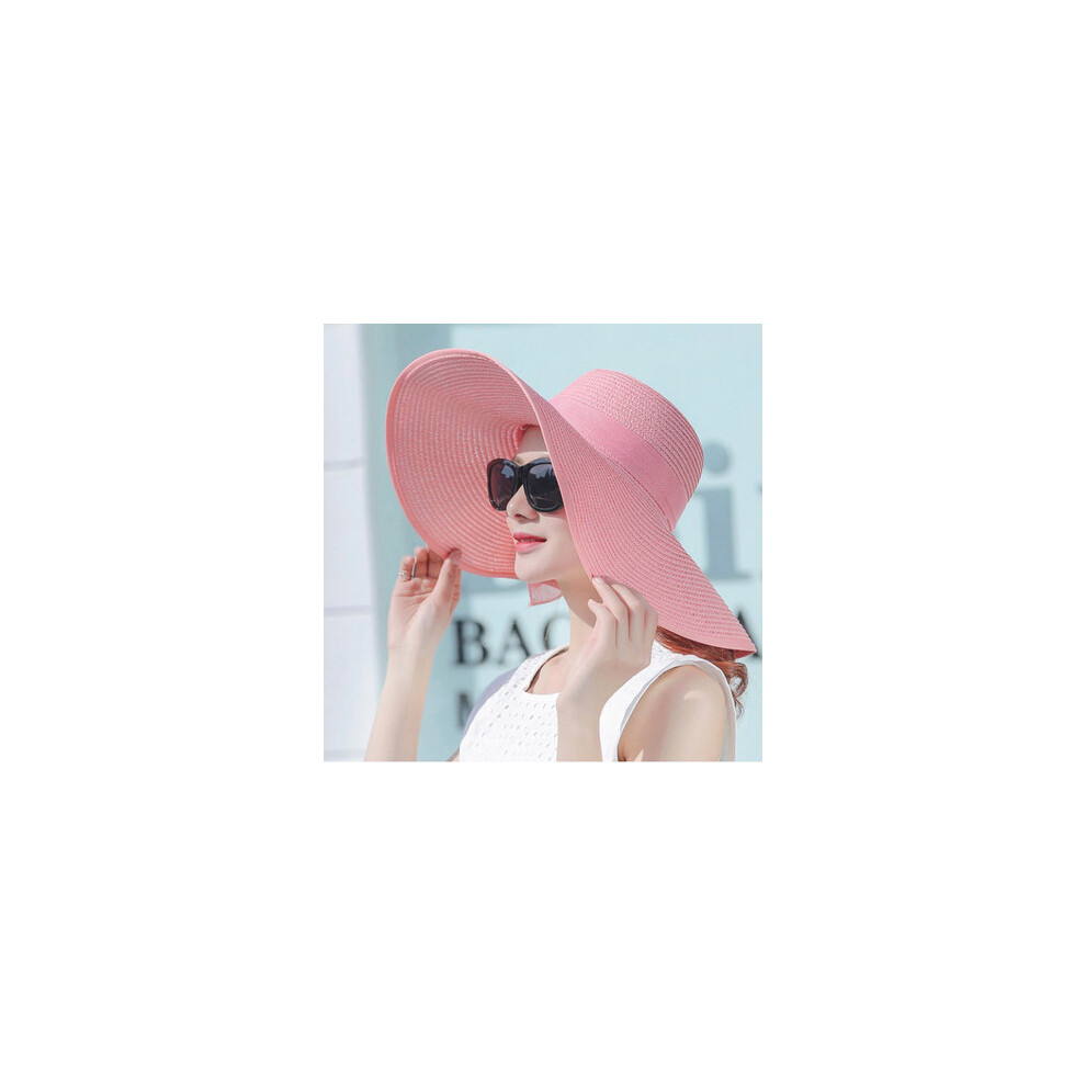 (Pink, 55-58cm) simple summer straw hat women big wide brim beach hat sun hat foldable sun block UV protection panama hat bone chapeu feminino