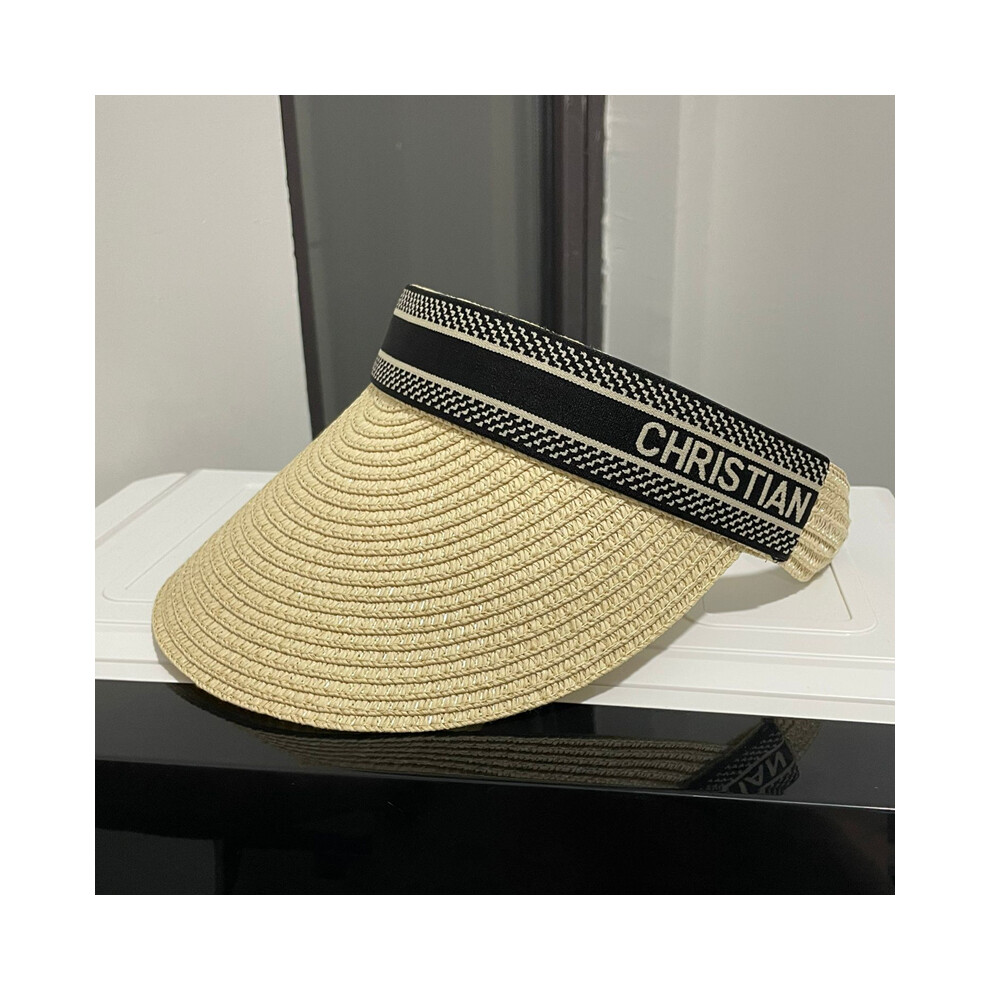 (1) 2021 Simple Women Summer Sun Visor Wide Brim Hat Beach Hat Adjustable UV Protection Female Cap Packable