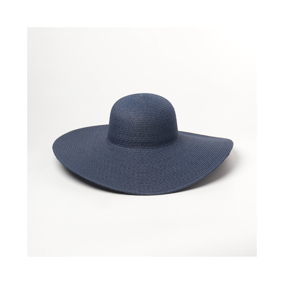 (Navy blue, Brim 14cm) Summer Simple Floppy Sun Hat Women Wide Brim Beach Hat Girls Seaside Travel Foldable Straw Hat Sunscreen UV Protection Lady Cap