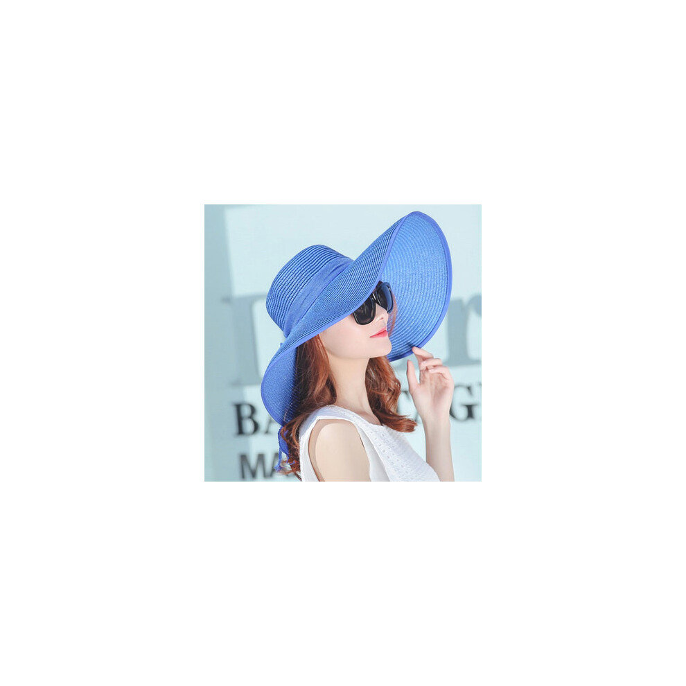 (Royal Blue, 55-58cm) simple summer straw hat women big wide brim beach hat sun hat foldable sun block UV protection panama hat bone chapeu feminino