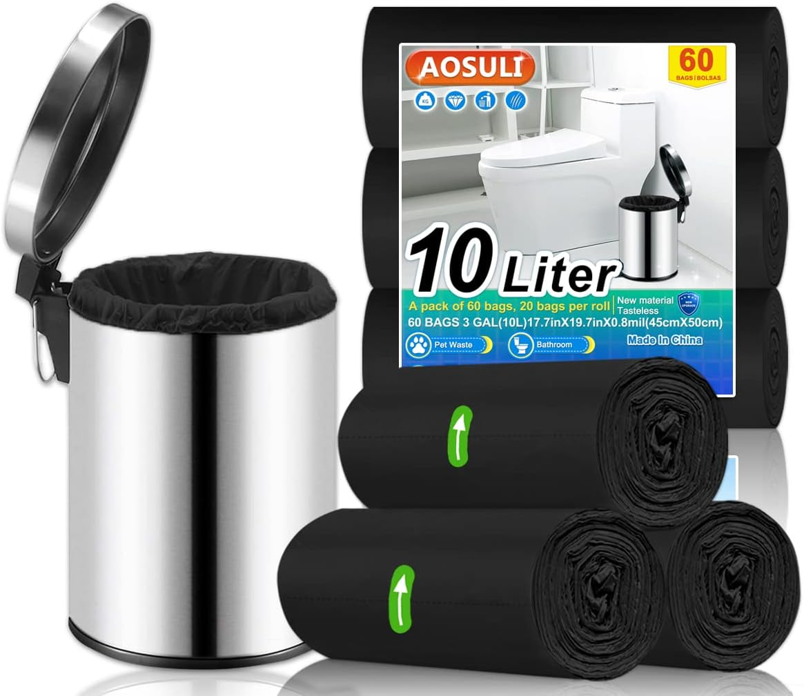 10Liter Small Bin Bags 60 Counts Garbage/Trash Bags Black Pedal Bin Liners for H