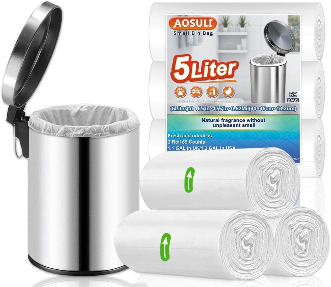 AOSULI Small Bin Bags 3-5l Bin Liners Pedal Clear Plastic Waste Bags with Tie H
