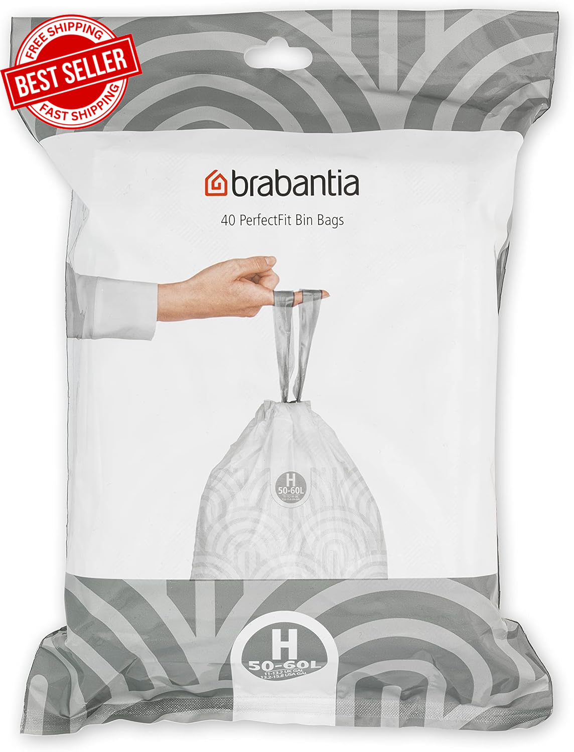 Brabantia Perfectfit Size H Bin Liners - 50-60L Trash Bags with Drawstring (40)