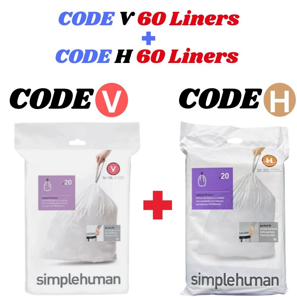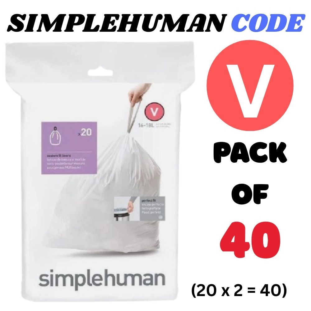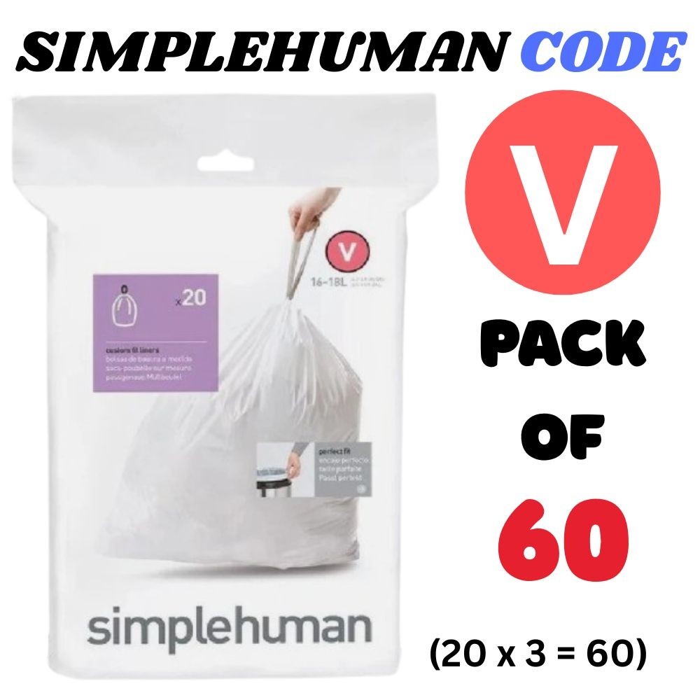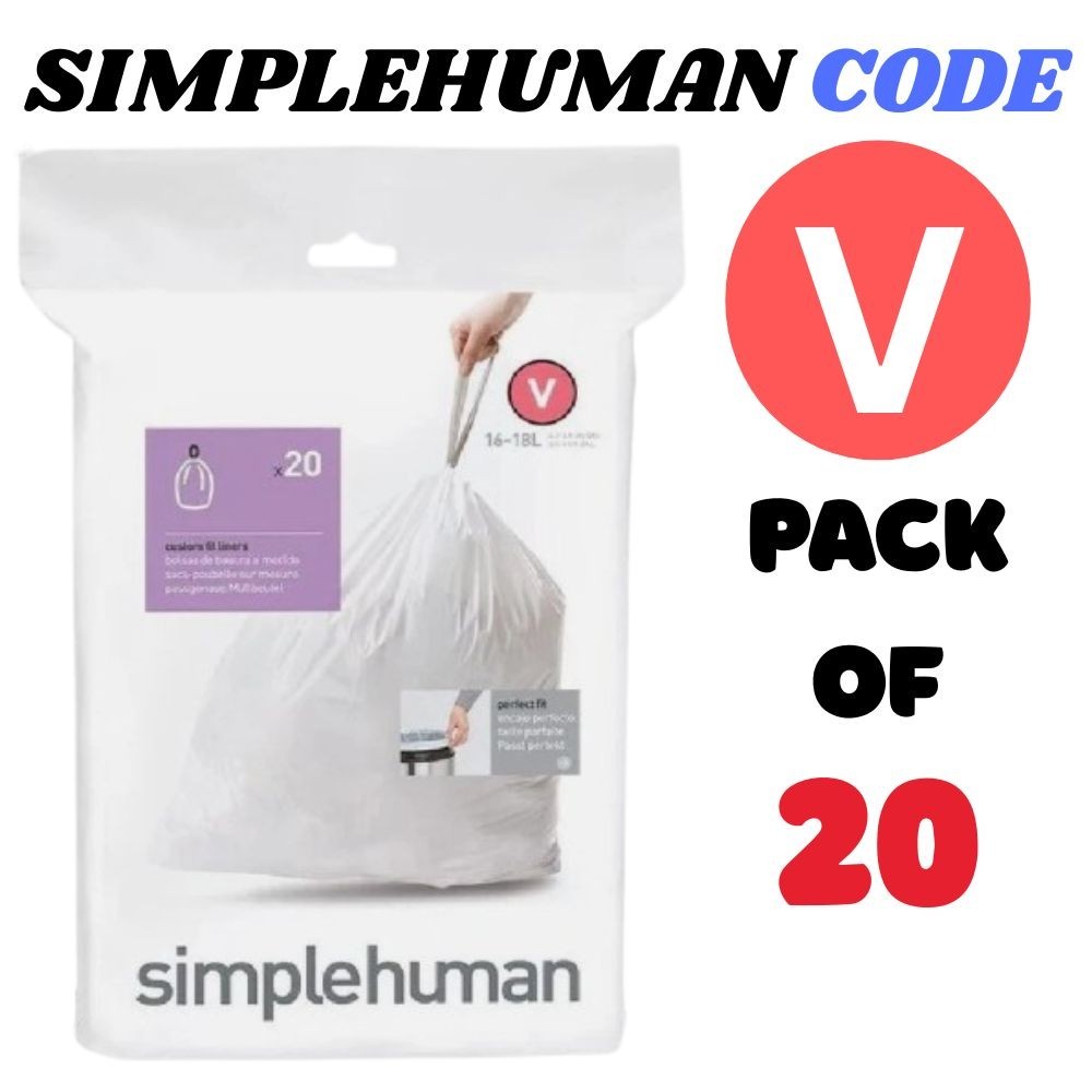 Simplehuman Bin Liners H - V Bin Liners Bin Bags 15L 30L trash bag 20-40-60 Pack