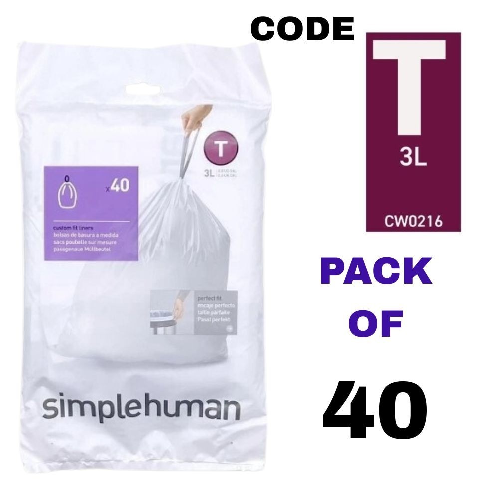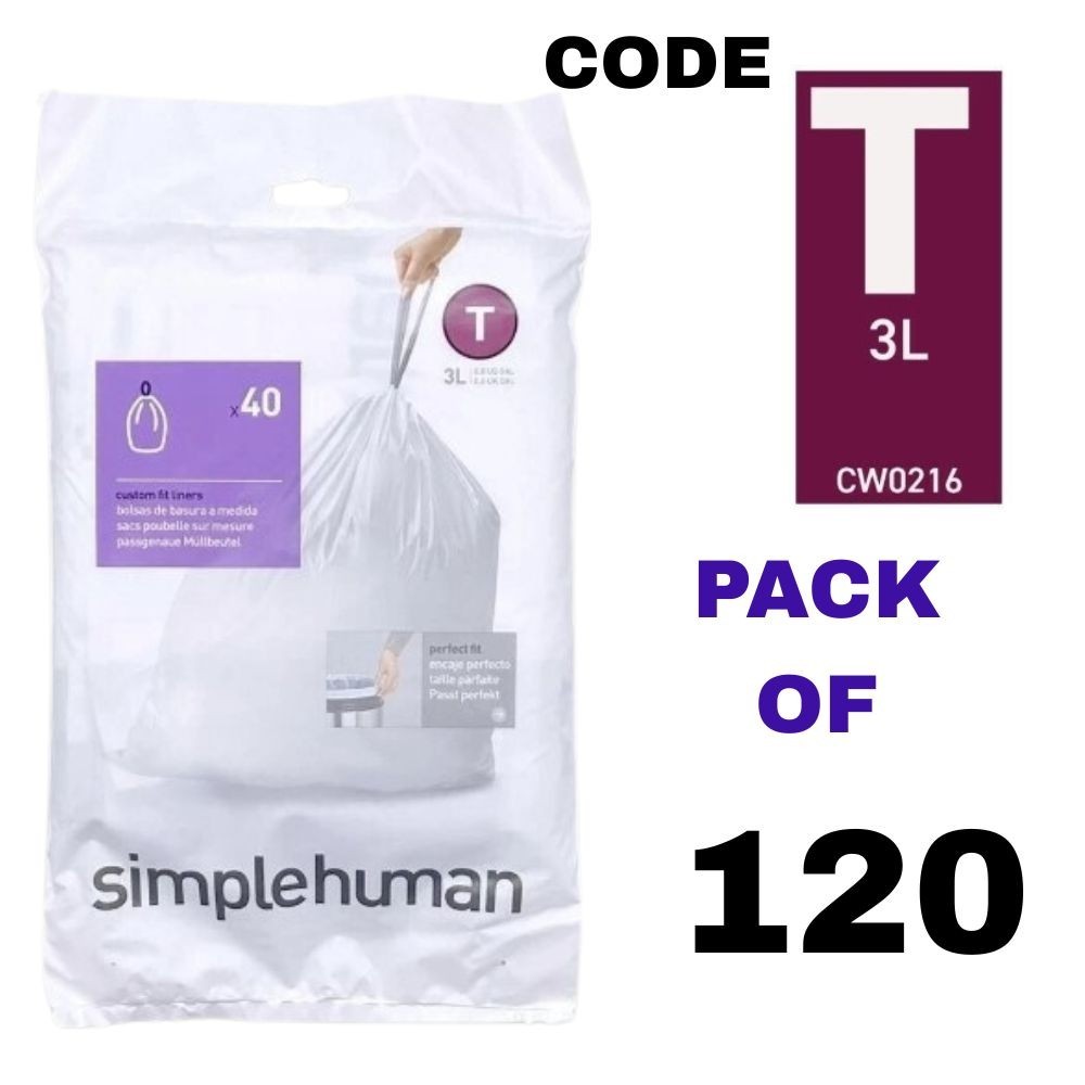 Simplehuman Bin Liners T Code T size T 3L White bin bags Size T 40-80-120 Pack