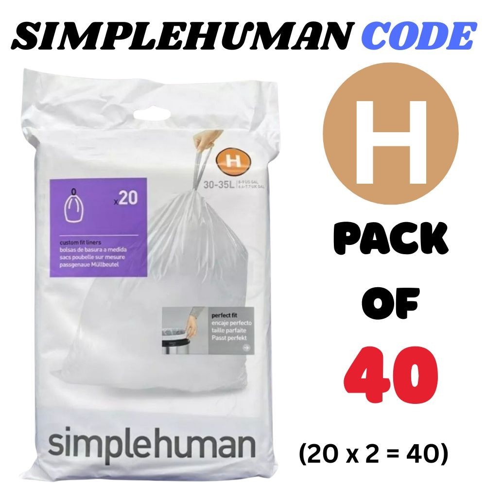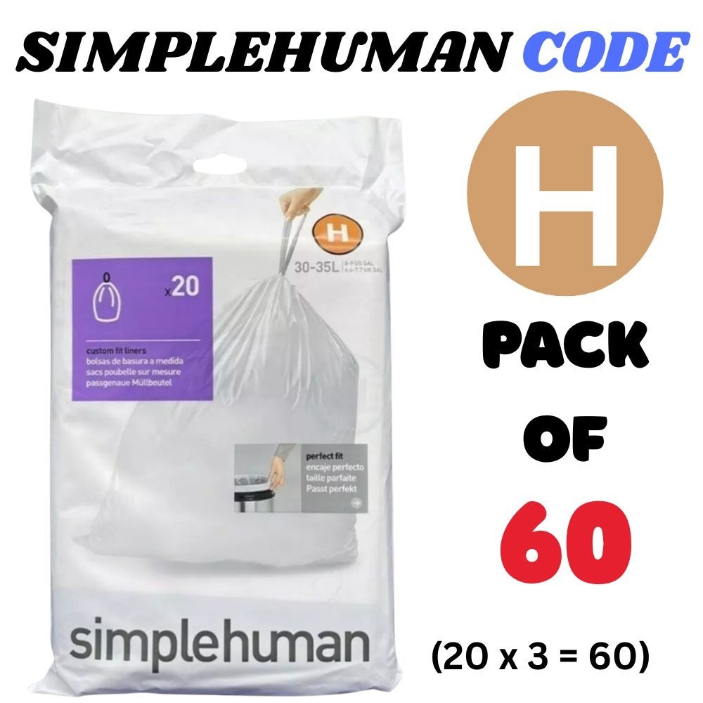 Simplehuman H Bin Liners H Bin Bags H Drawstring bags 30L-35Litre 20-40-60 Pack