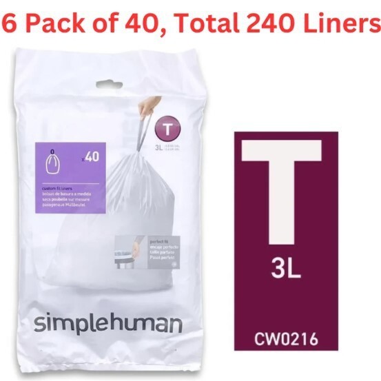 Simplehuman Bin Liners T Code T size T 3L White bin bags Size T 40 To 240 Pack T