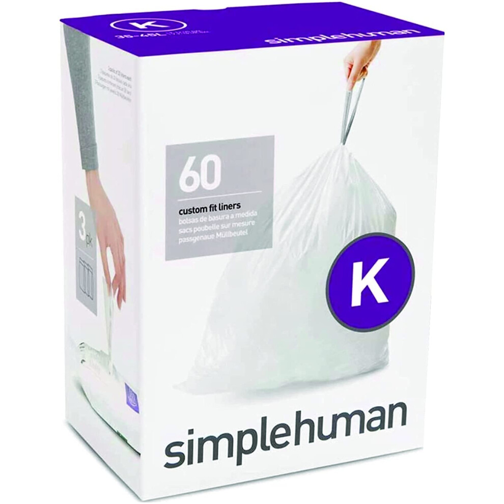 simplehuman CW0260 code K Custom Fit Bin Liner Bulk Pack, White Plastic (3 Pack of 20, Total 60 Liners)