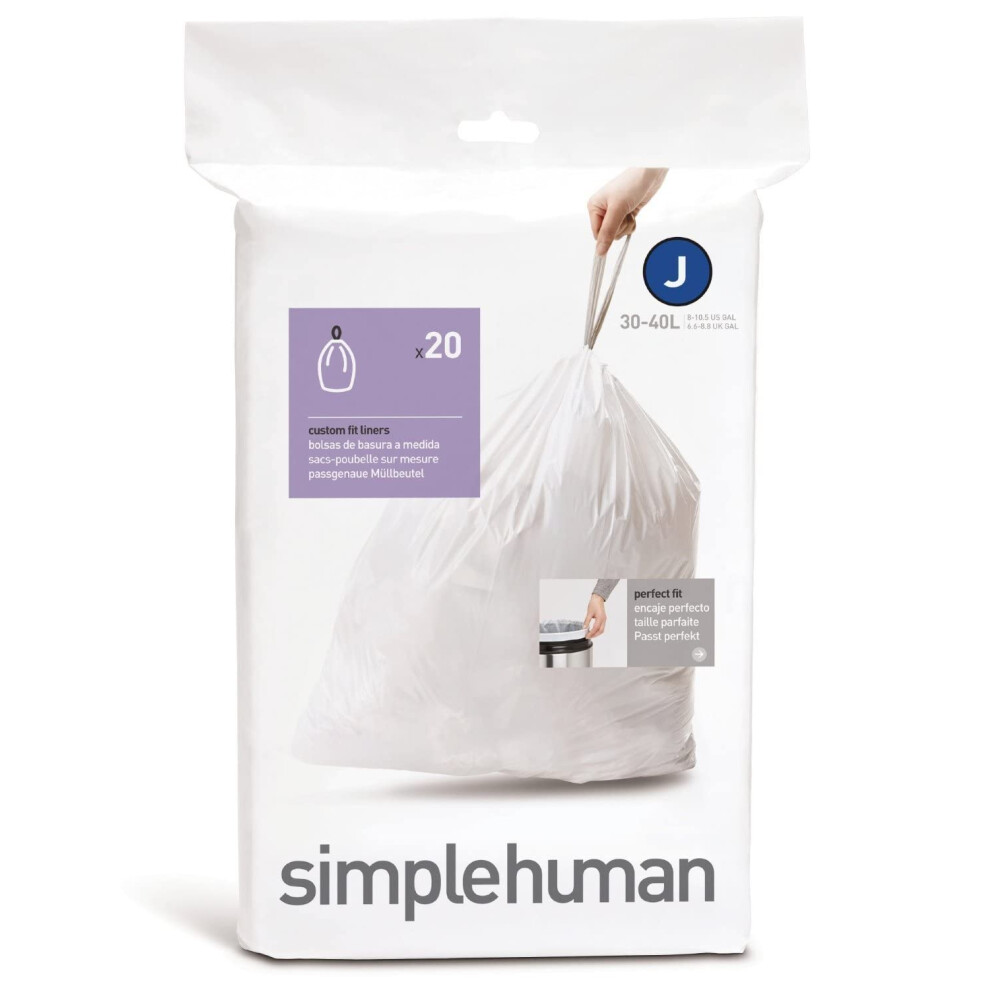 simplehuman CW0169 code J Custom Fit Bin Liners, White Plastic (Pack of 20 Liners)