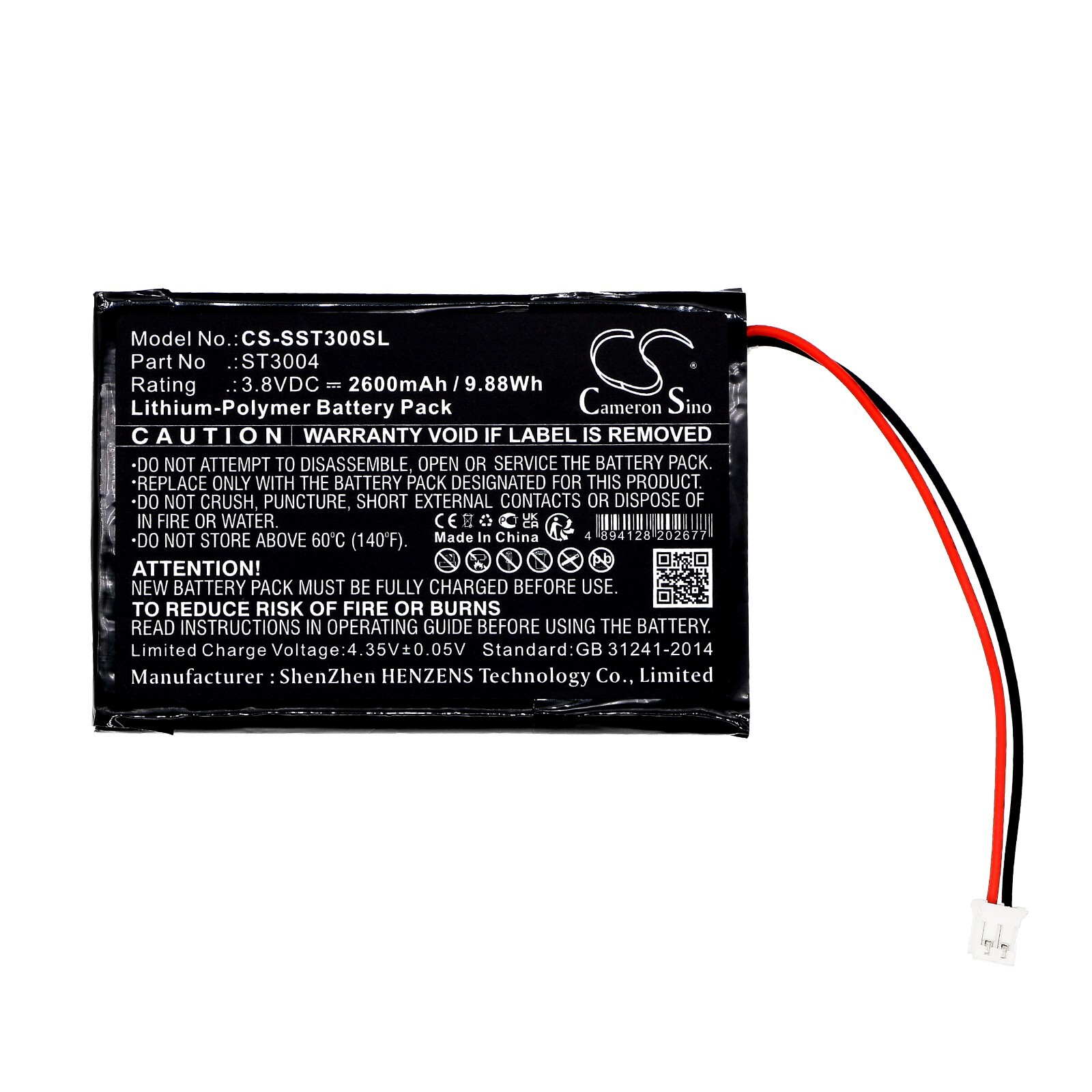 BATTERIE 2600mAh Type ST3004 For Simplehuman ST3004 ST3010 Vanity Mirror