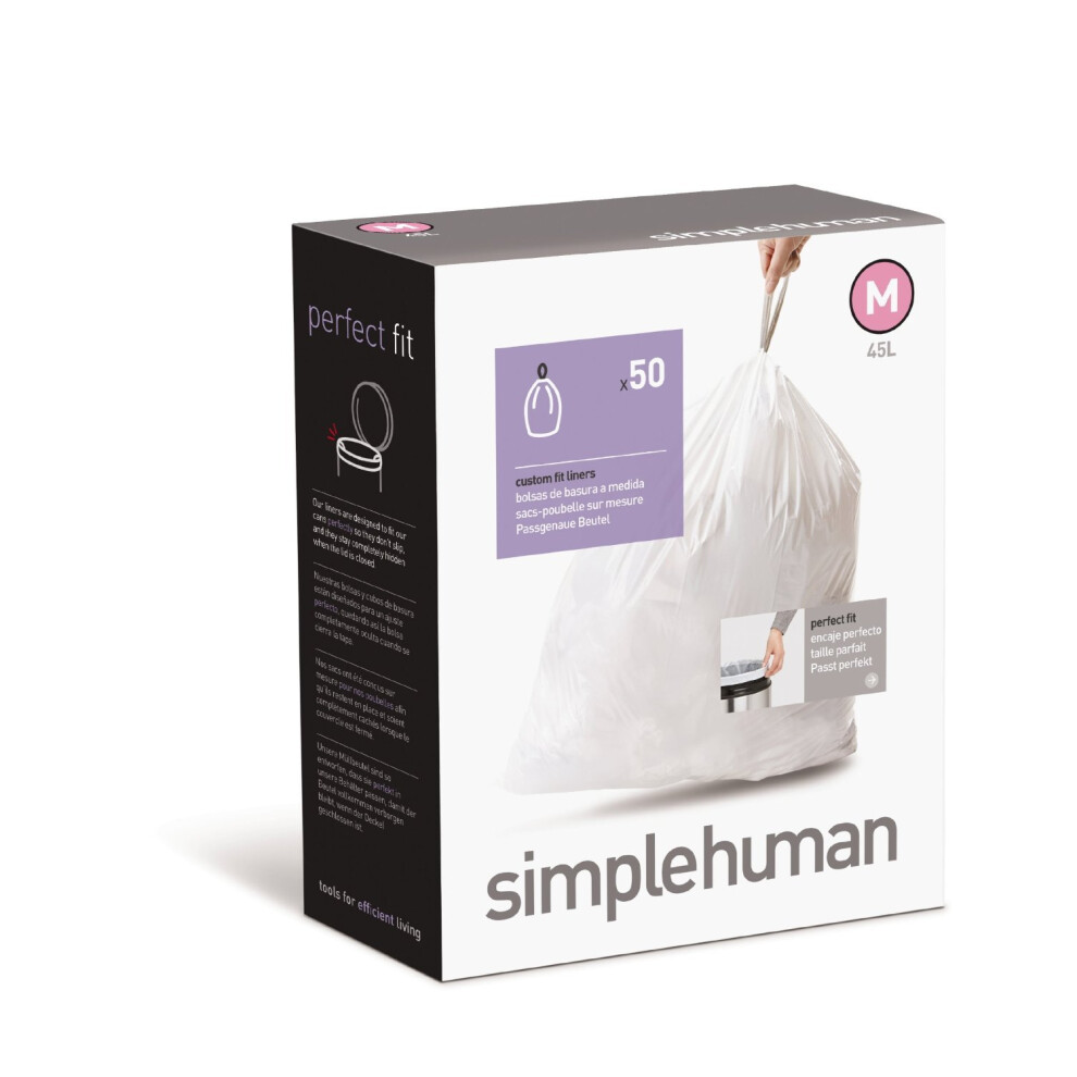 simplehuman Custom Fit Trash Can Liner M, 45 L / 12 Gal, 50-Count Box