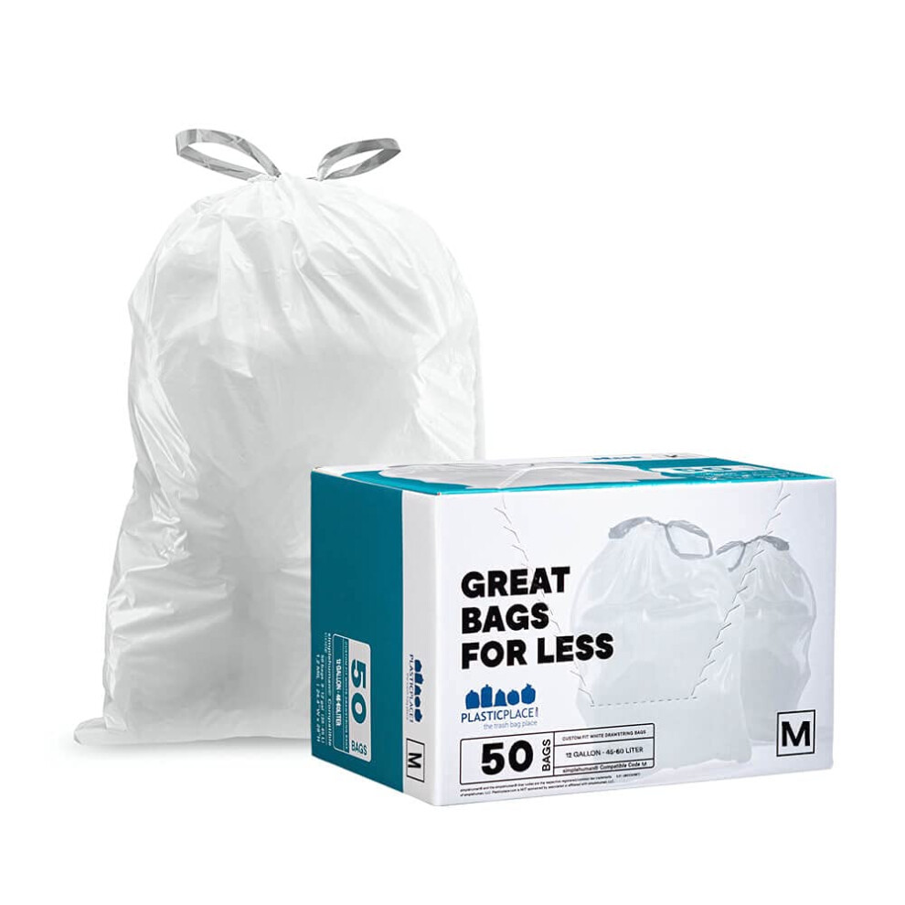 Plasticplace Trash Bags simplehuman (x) Code M Compatible (200 Count)?White Drawstring Garbage Liners 12 Gallon / 45 Liter ? 21.5" x 30.75"