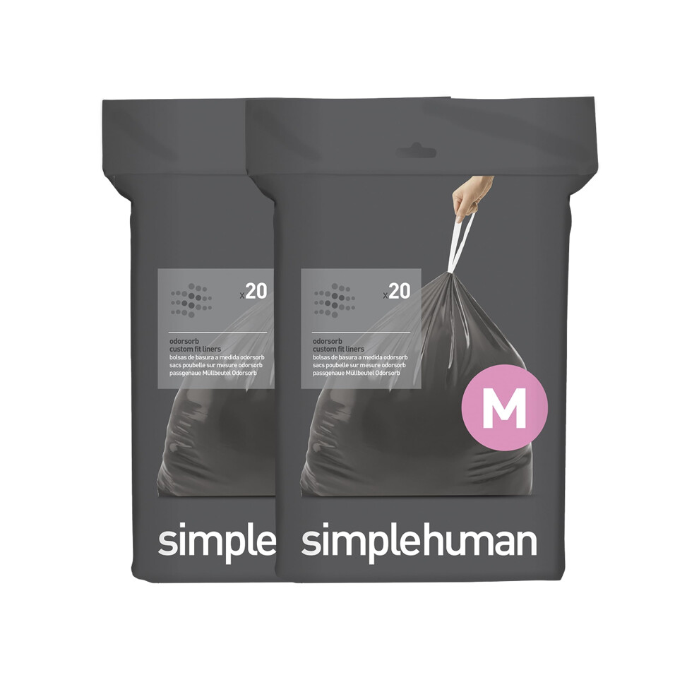 simplehuman Code M 40 Count Genuine Odorsorb Custom Fit Liners Drawstring Odor Absorbing Trash Bags in Dispenser Packs 45 Liter / 12 Gallon