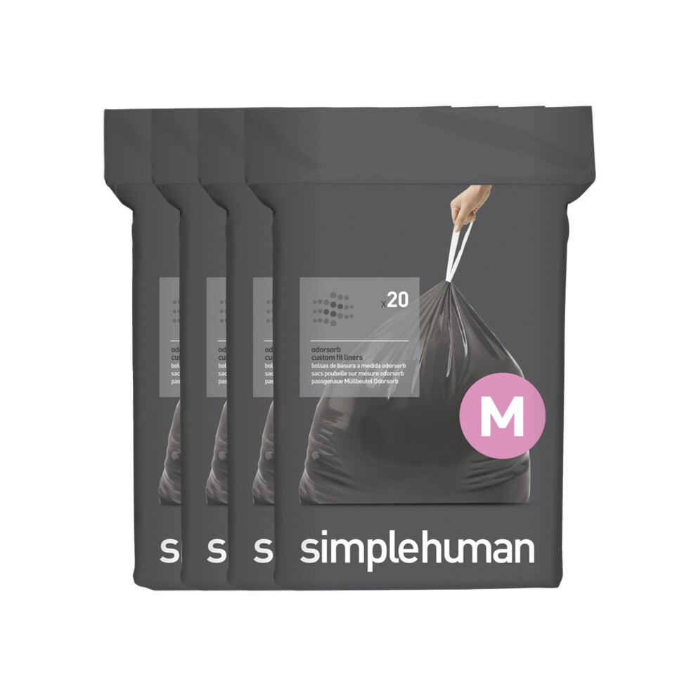 simplehuman Code M 80 Count Genuine Odorsorb Custom Fit Liners Drawstring Odor Absorbing Trash Bags in Dispenser Packs 45 Liter / 12 Gallon