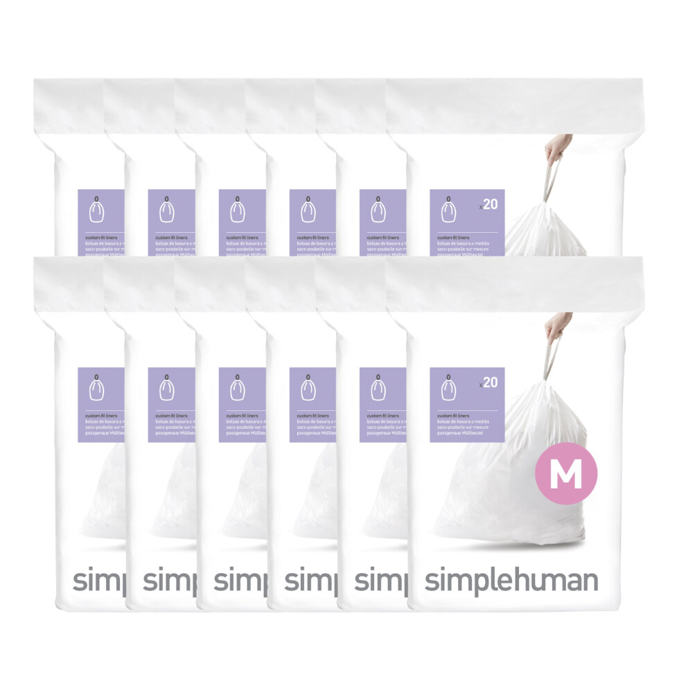simplehuman Code M 240 Count Genuine Custom Fit Liners Drawstring Trash Bags in Dispenser Packs 45 Liter/12 Gallon