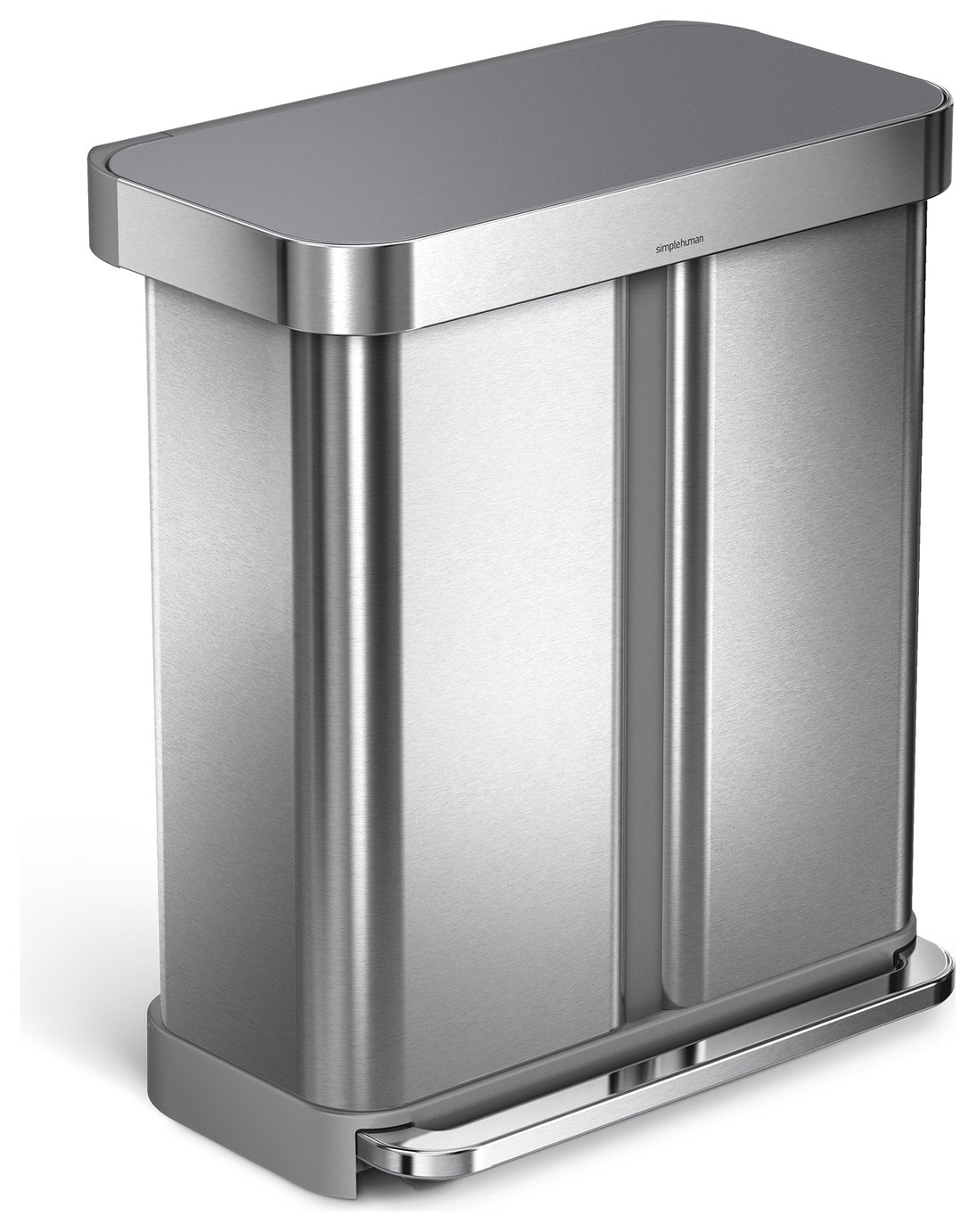 Simplehuman 58 Litre Recycling Pedal Bin - Stainless Steel