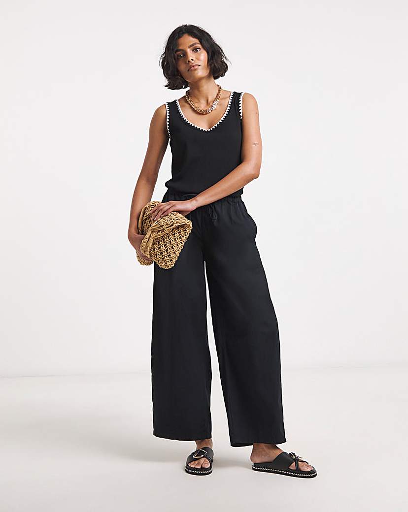 Simply Be Black Cotton Barrel Trouser Black - Simply Be - Size: 10