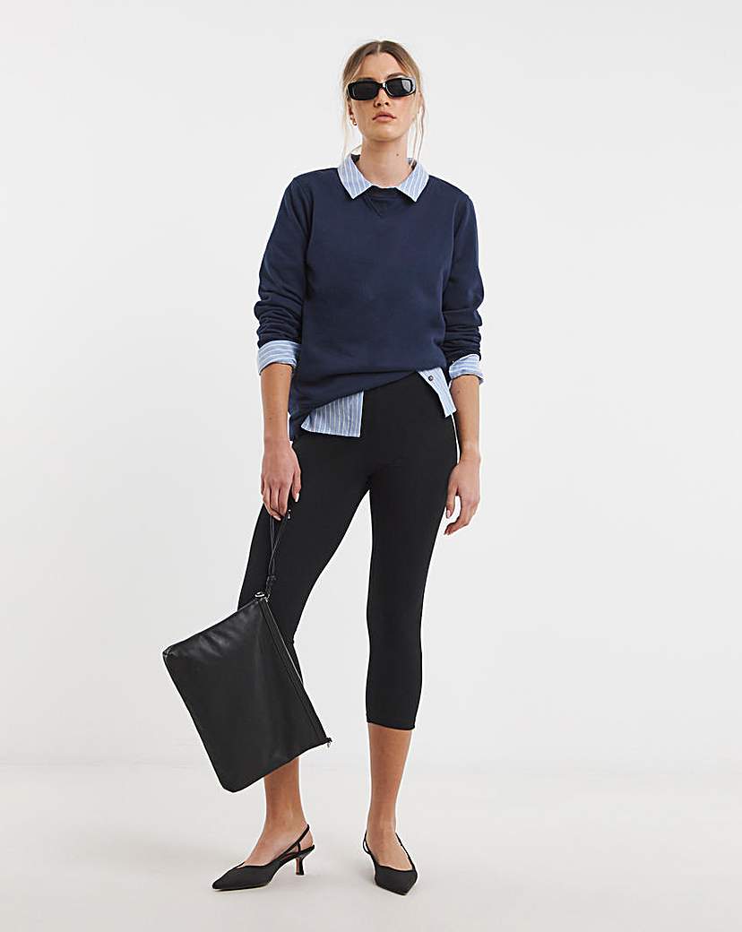 Black Cotton Cropped Legging Black - Simply Be - Size: 10